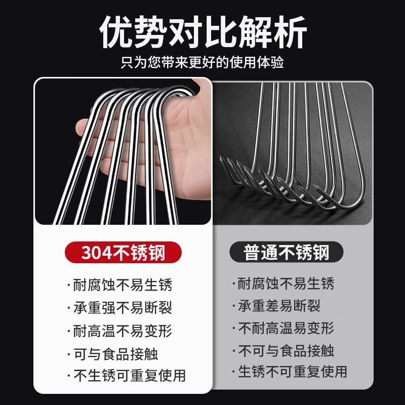推荐理由:腊肉挂钩不锈钢S型晒挂烤鸭香肠猪肉勾子加粗S钩挂肉钩子实心承重