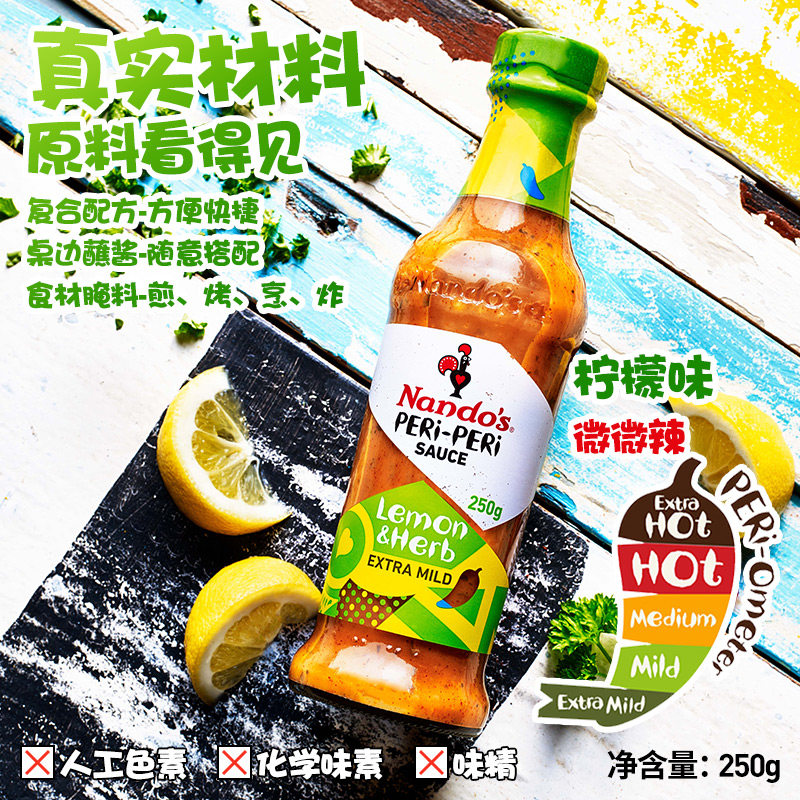 进口南逗柠檬辣椒酱轻食鸡胸肉蔬菜沙拉酱水煮菜蘸料简餐250g*1瓶
