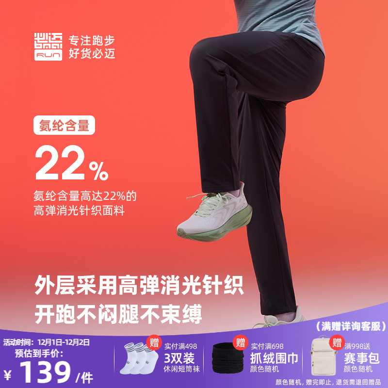 必迈加绒跑步裤锥形运动长裤户外防风保暖裤通勤直筒休闲长裤