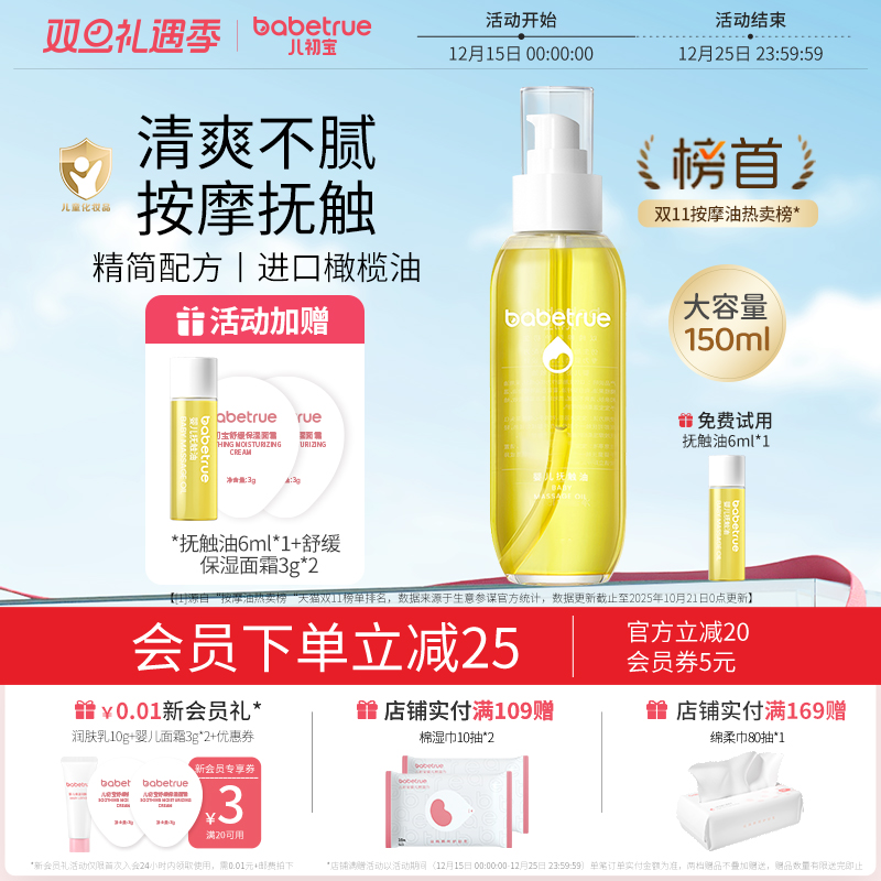 儿初宝抚触油新生婴儿专用宝宝润肤幼儿橄榄按摩身体护肤抚秋冬