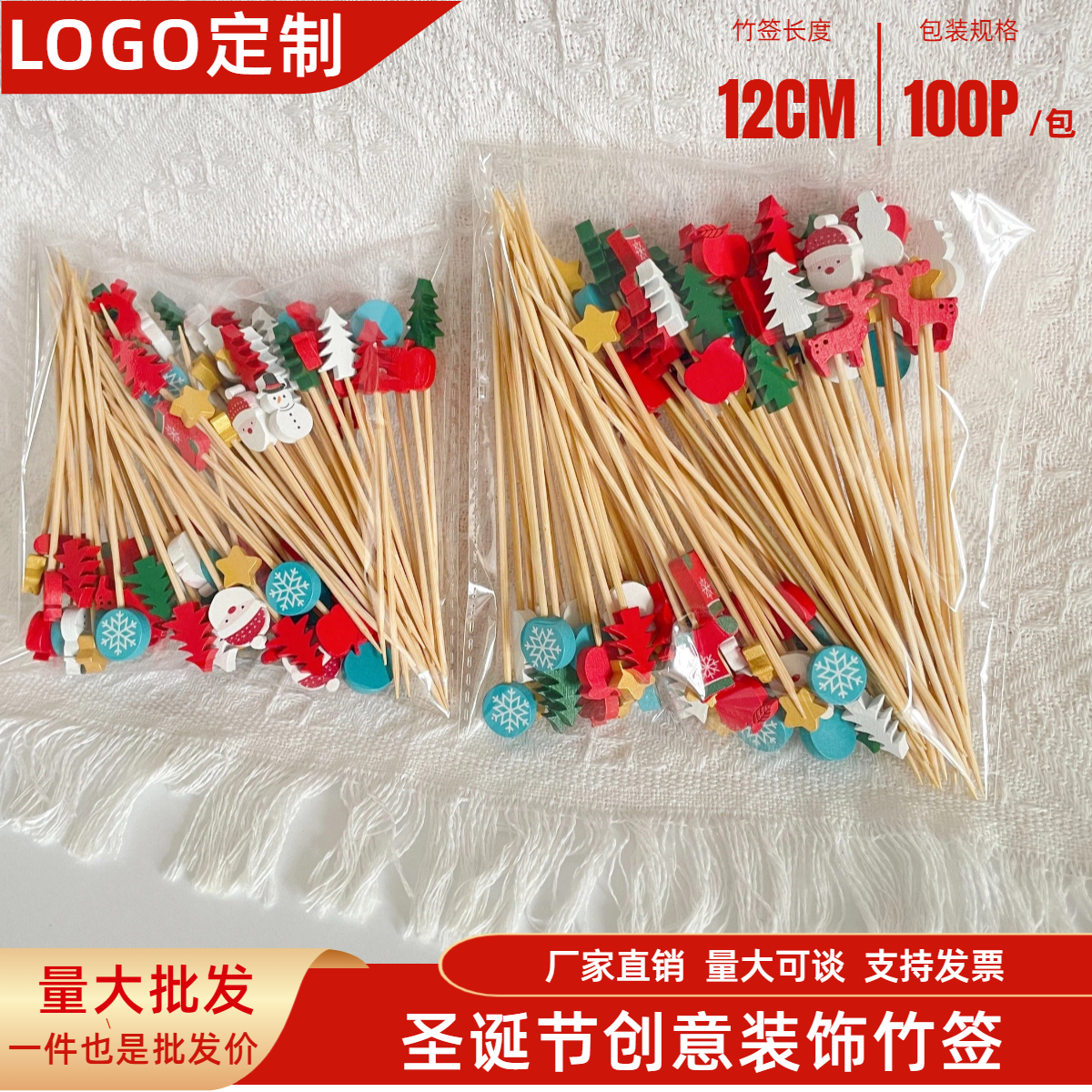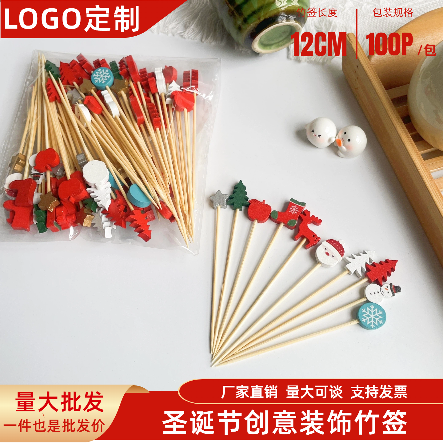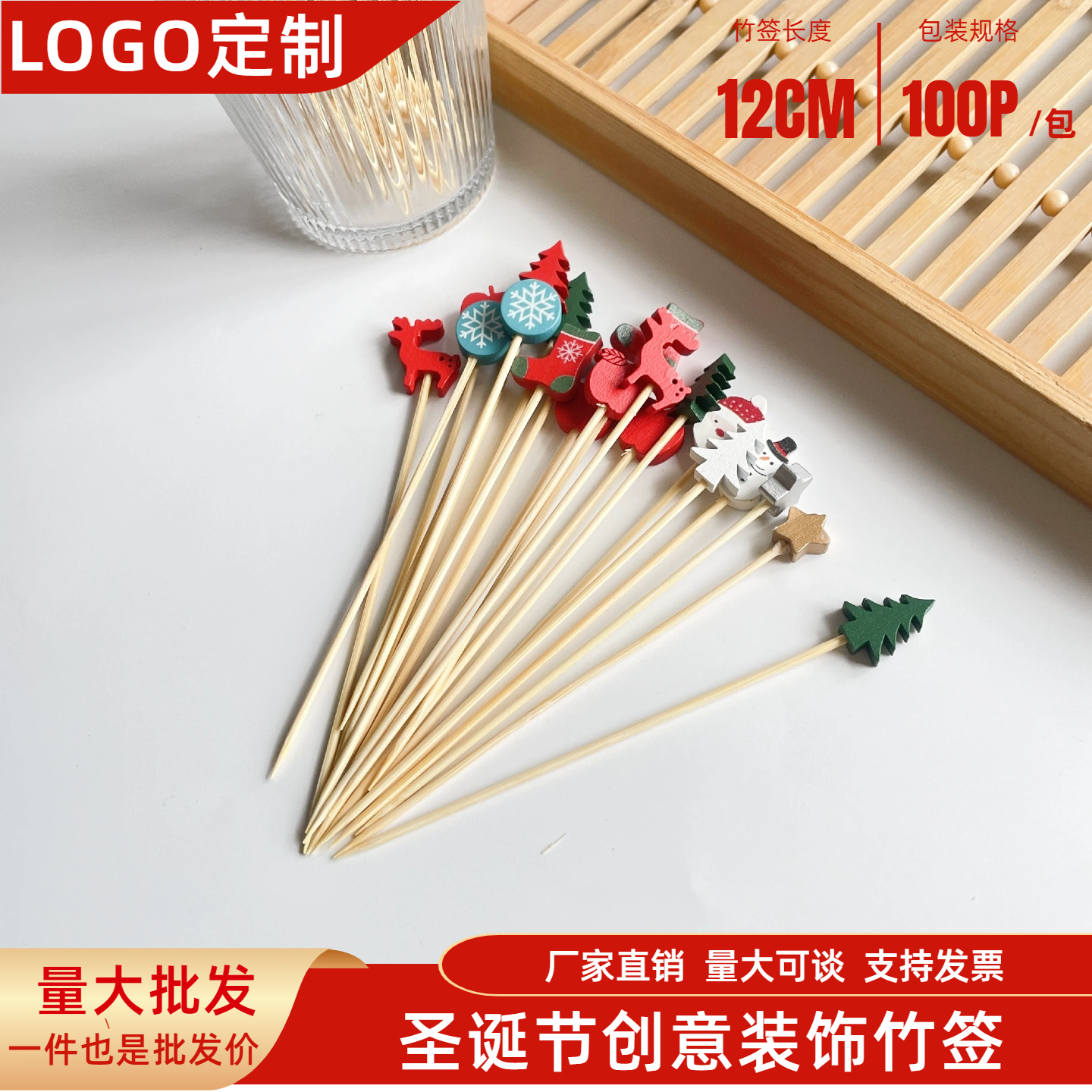 圣诞节创意装饰水果签竹签汉堡插签酒吧创意艺术鸡尾酒装饰签