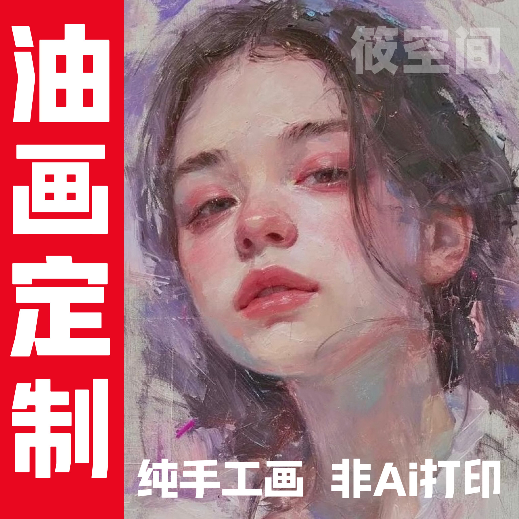 手绘油画定制美院手工代画人物宠物风景肌理客厅沙发背景简约复古