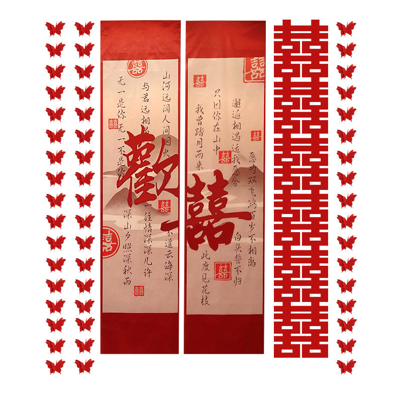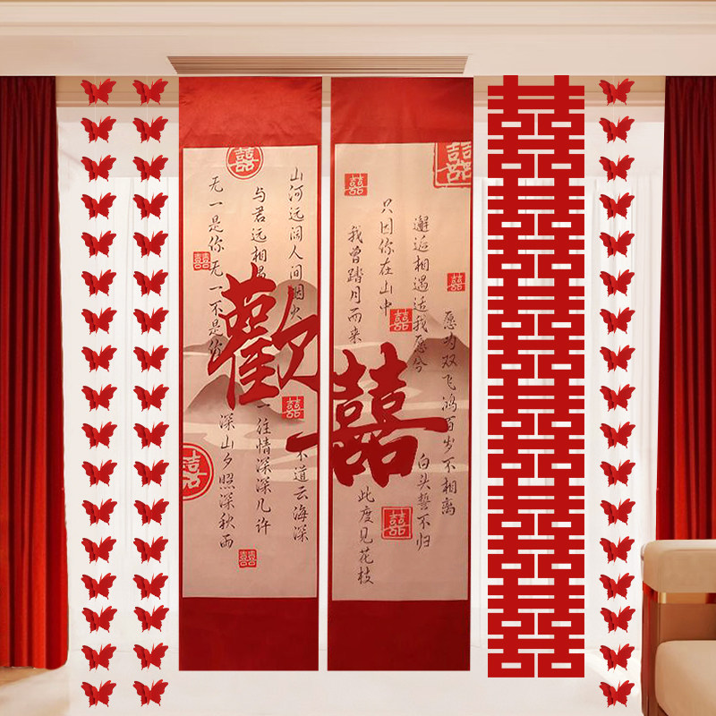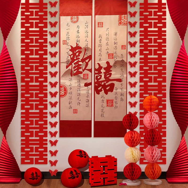 推荐理由:婚房布置套装结婚新房卧室床头装饰婚礼客厅背景阳台喜字拉花条幅