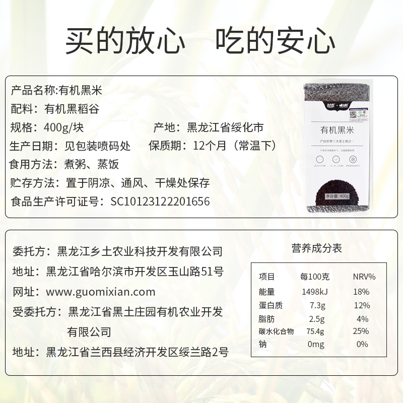 北大荒山之鲜有机黑米400g五谷杂粮粗粮黑米粥大米黑米糊饭团原料