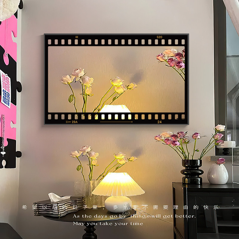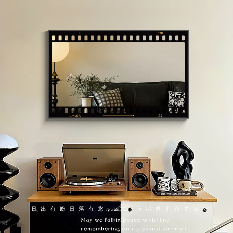 网红胶片镜子装饰画小众艺术餐厅壁画复古客厅沙发背景墙镜面挂画