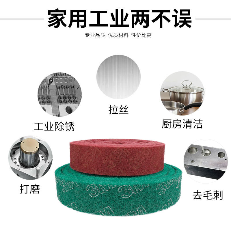 推荐理由:3M加厚百洁布工业用金刚砂海绵擦洗碗刷锅厨房清洁不锈钢拉丝除锈