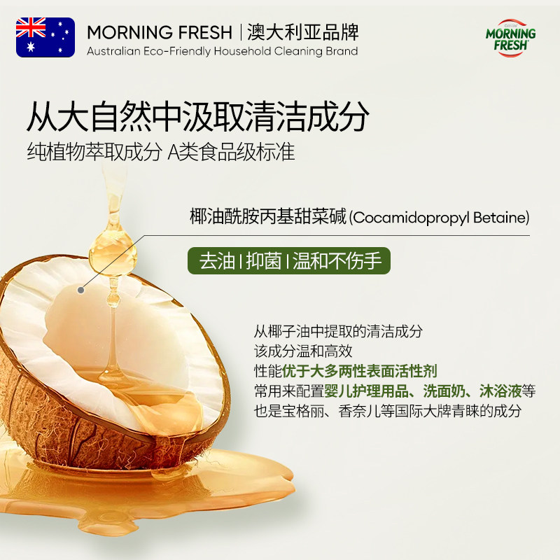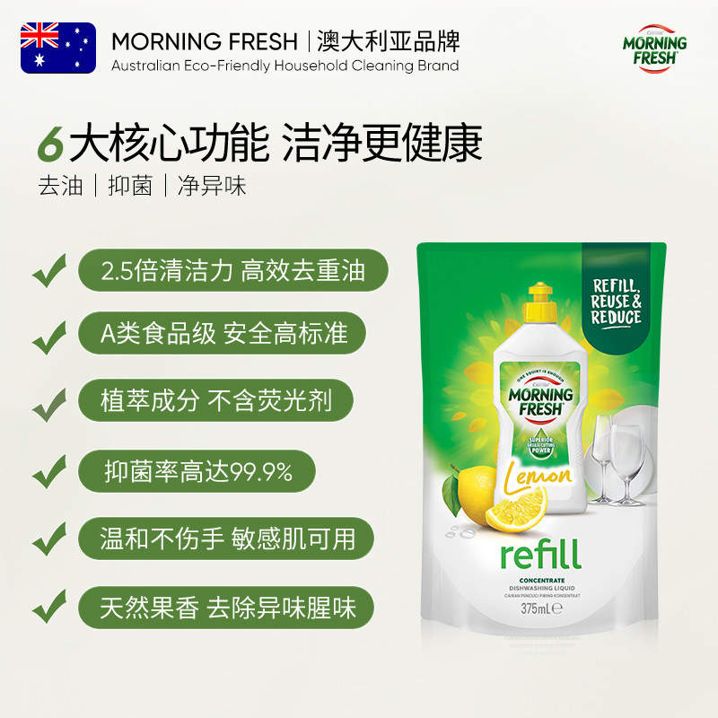 澳洲MorningFresh超浓缩进口果蔬食品级洗洁精补充装组合家用实惠