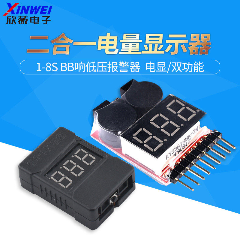 电量显示器/BB响低压报警器电显双功能蜂鸣器1-8S新款二合一 模块