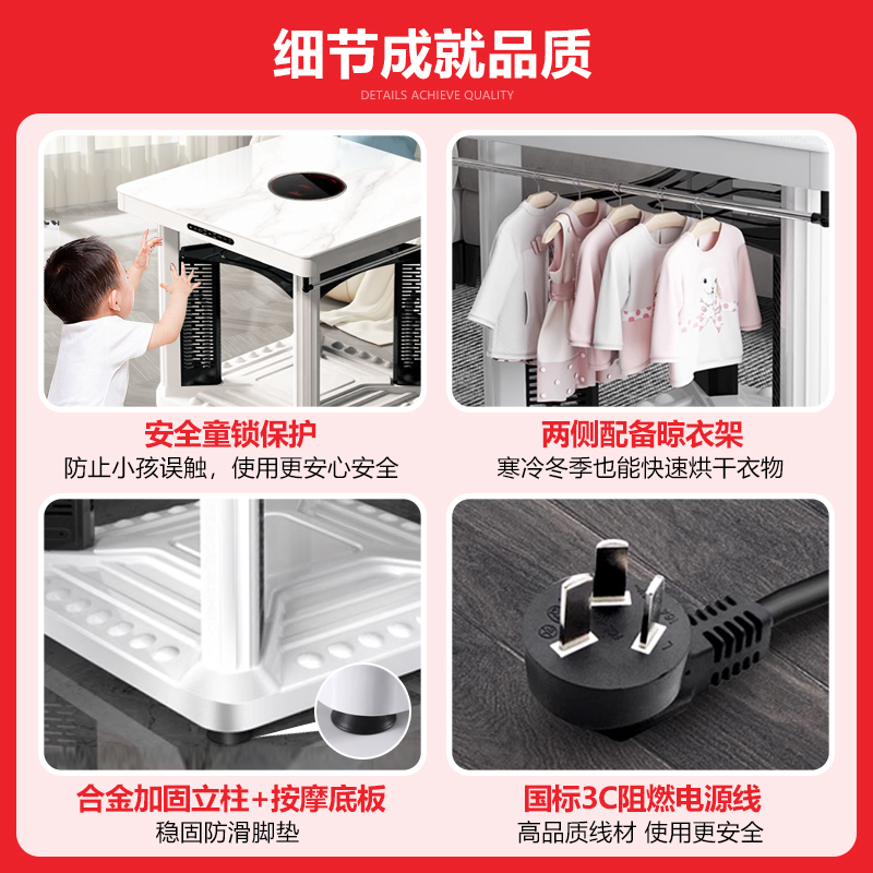 长虹电暖桌取暖桌烤火桌子家用多功能正方形八面电暖炉电烤桌炉子