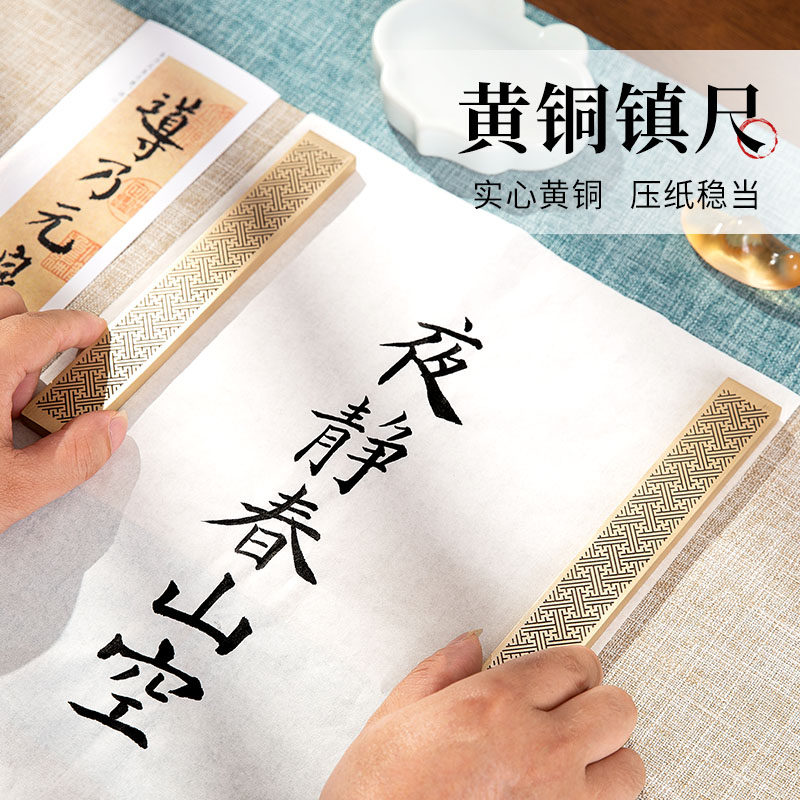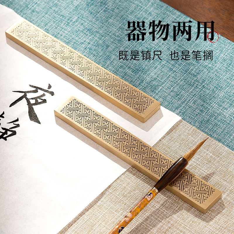 推荐理由:梅林笔庄黄铜镇纸镇尺实心黄铜书法镇纸尺毛笔压纸石压书压条金属镇尺大号文房四宝高档创意小摆件可定制刻字