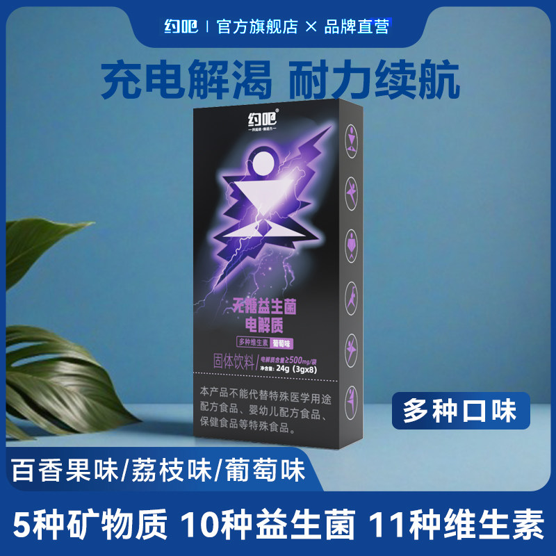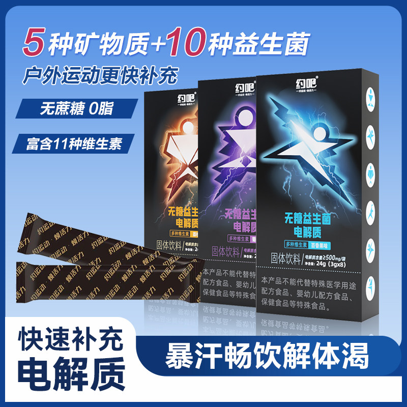 约吧无糖电解质粉冲剂固体饮料多口味冷热双泡冲饮剂运动骑行便携