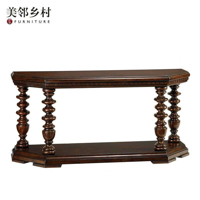 美邻乡村美式欧式罗马柱玄关实木雕花玄关桌玄关柜沙发桌客厅隔断