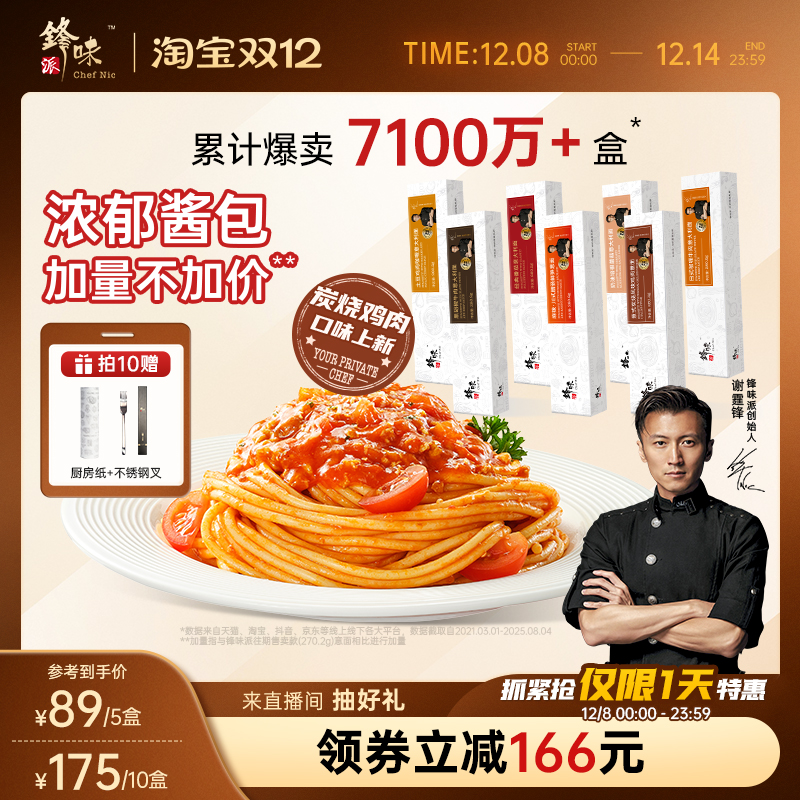 锋味派意大利面官方旗舰店番茄肉酱儿童速食意面家用早餐意粉面条