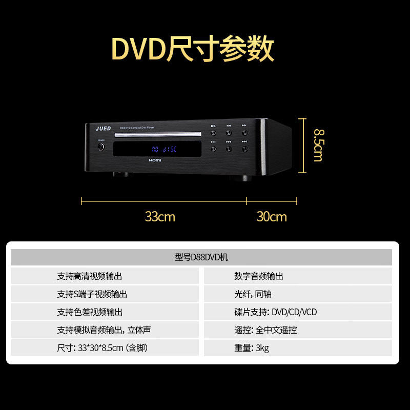JUED君笛 D88高清HDMI播放机DVD/CD影碟机家用光纤同轴5.1播放器
