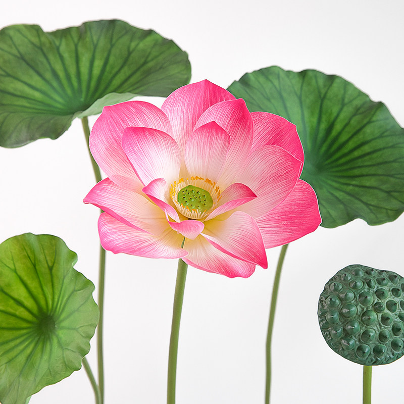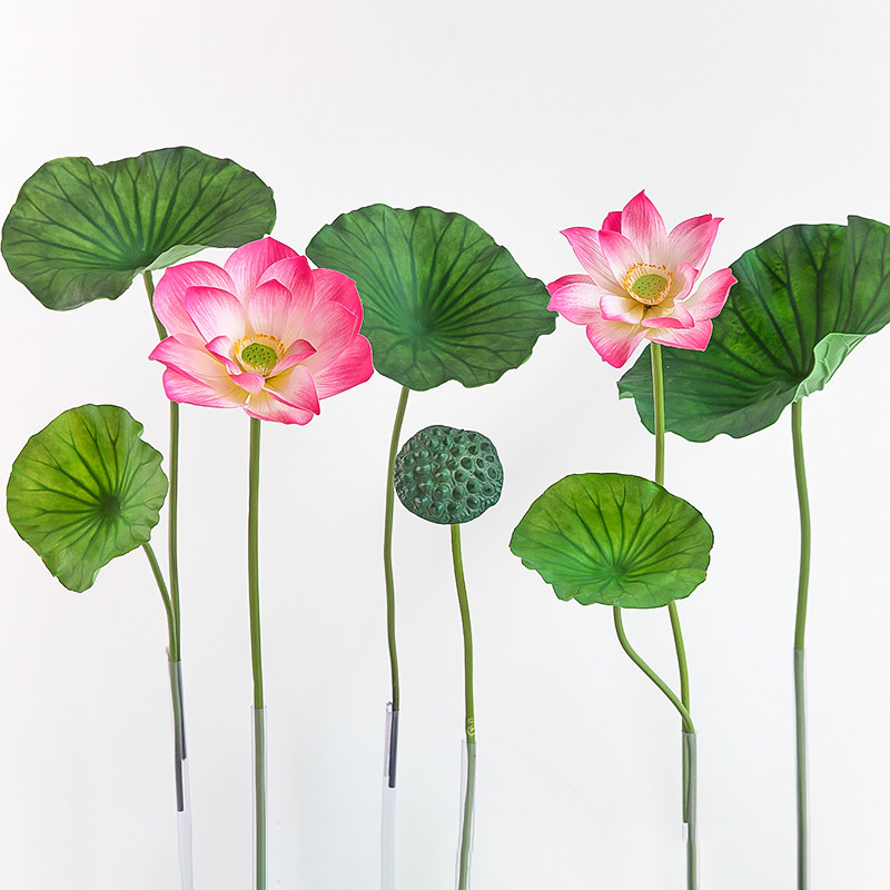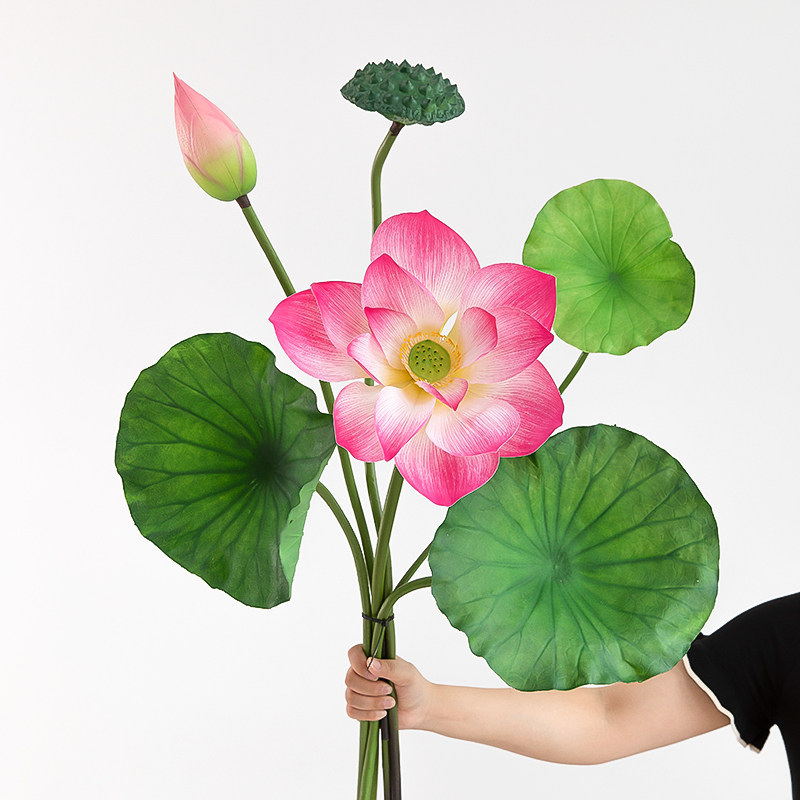 推荐理由:新款仿真荷花荷叶莲蓬单支手持古风拍照道具水池鱼池景观装饰假花