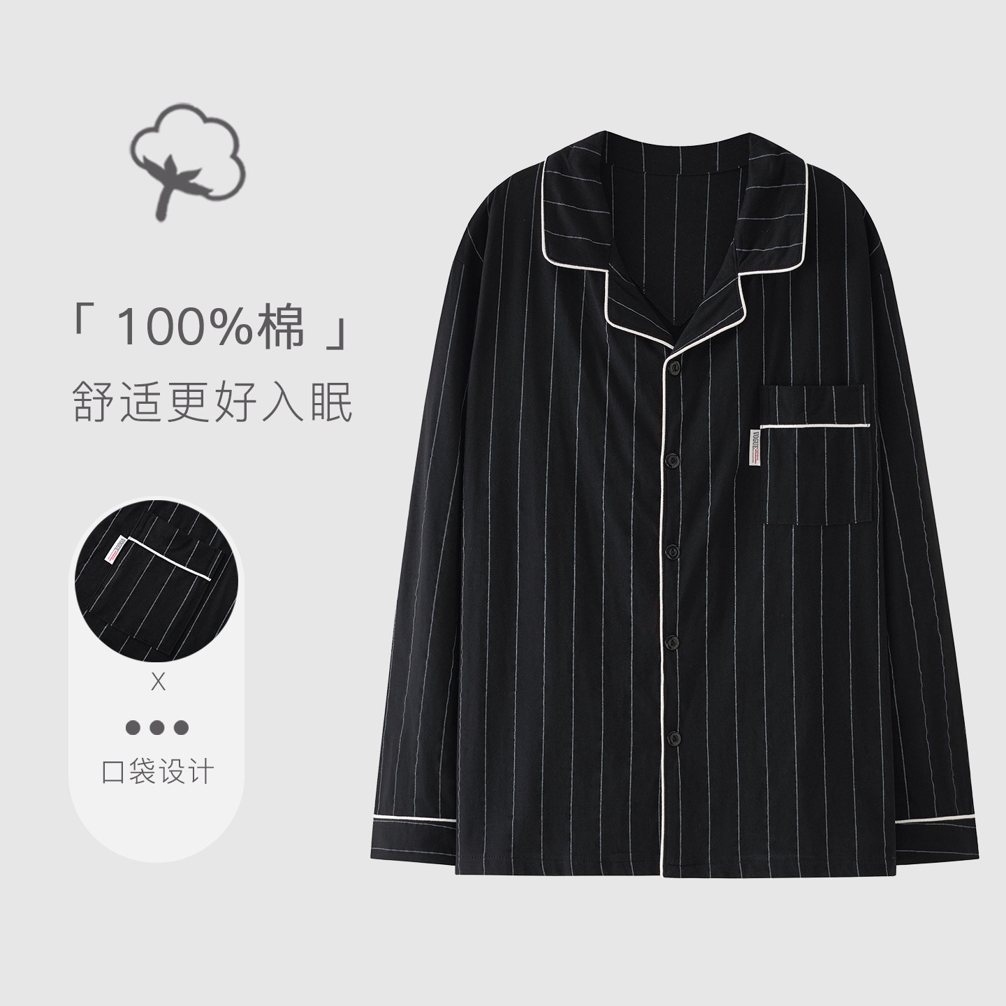 推荐理由:睡衣男款纯棉单件上衣春秋款100%全棉长袖加大码宽松开衫男士t恤