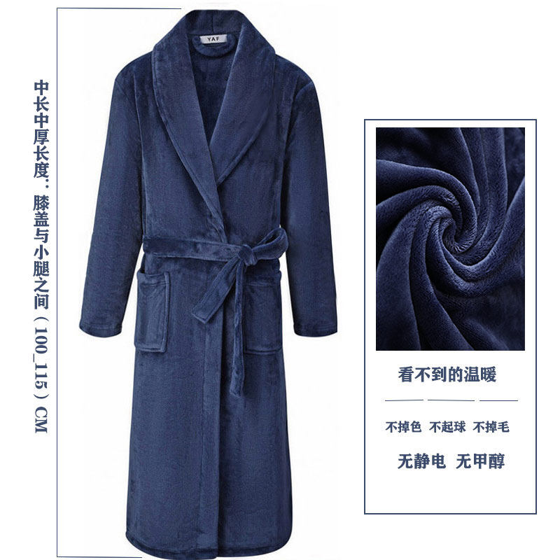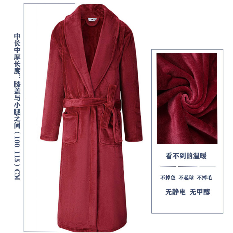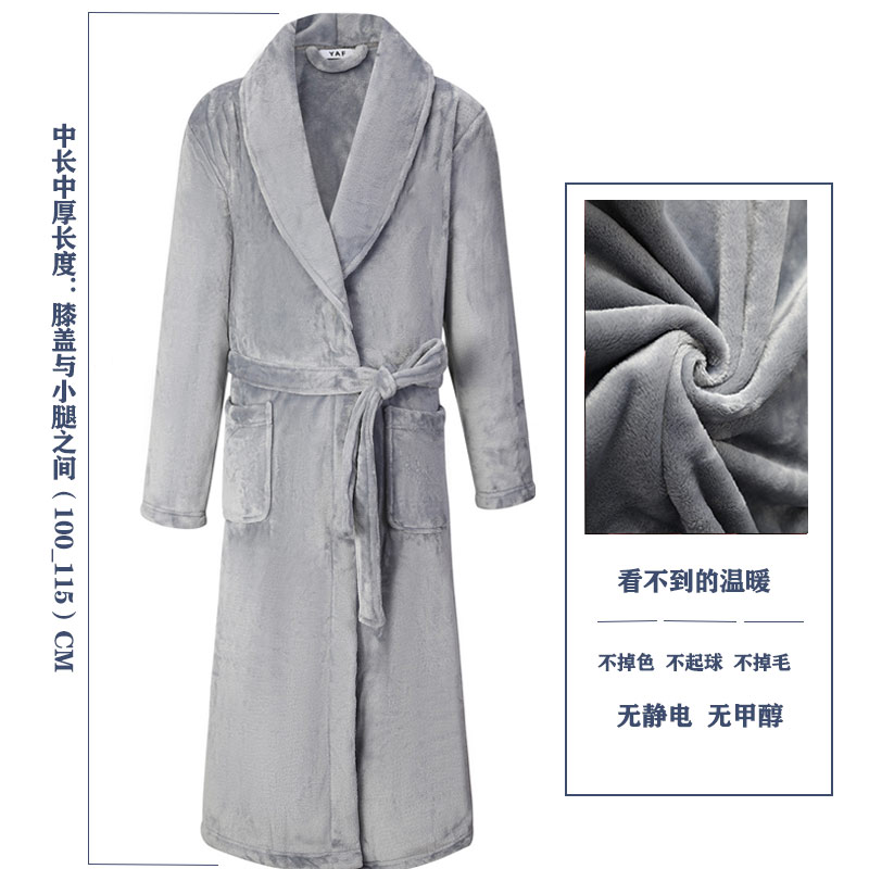 推荐理由:睡衣男士冬季加长加厚款法兰绒睡袍长袖大码纯色珊瑚绒浴袍家居服