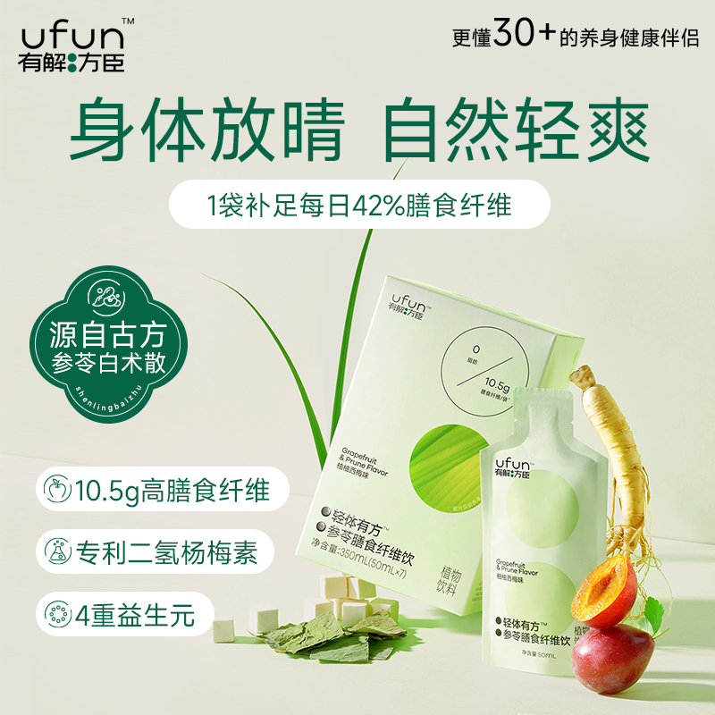 【有解方臣】轻体有方参苓10.5g膳食纤维饮柚柚西梅味50ml*7袋/盒
