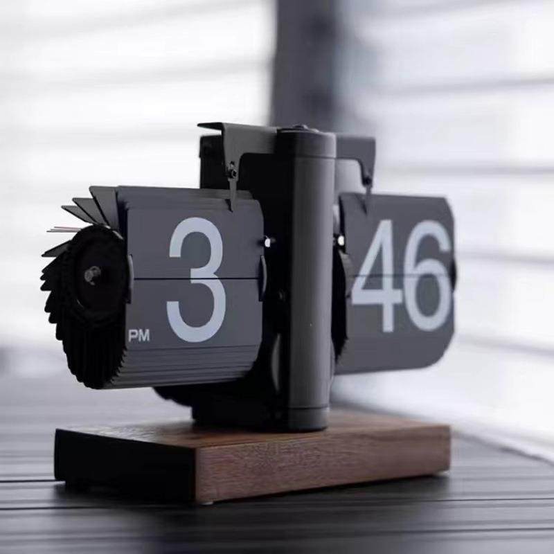 实木百搭自动翻页时钟座钟摆件复古翻页钟客厅创意机械钟