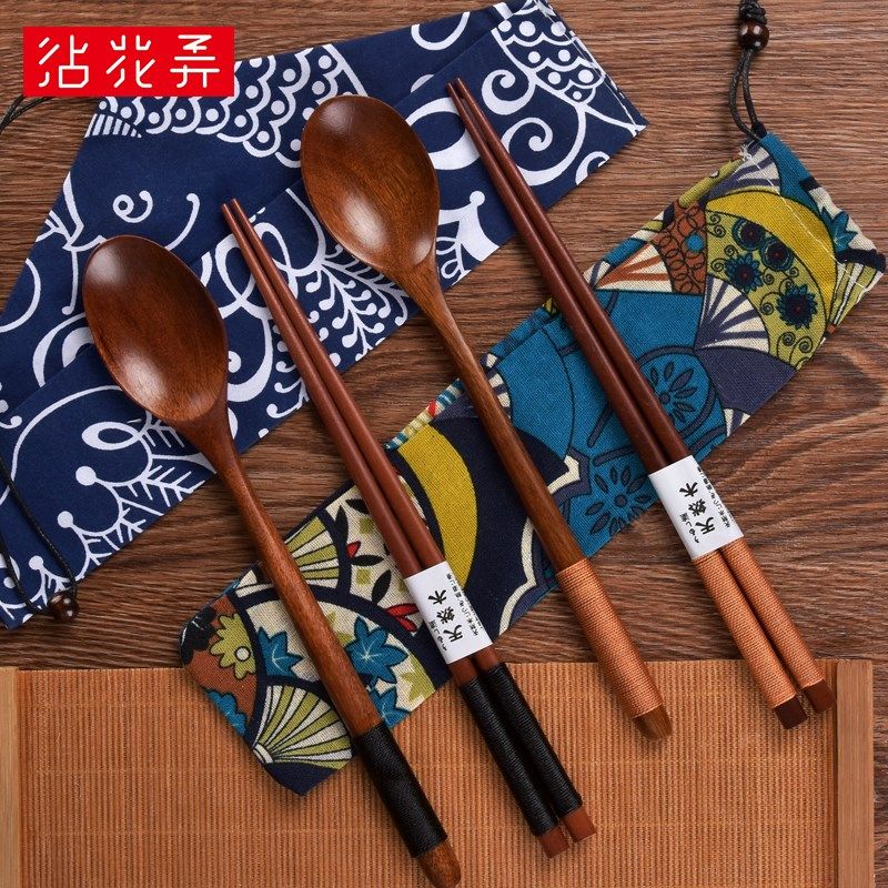 日式布袋筷勺套装便携p收纳实木筷调羹摄影道具农产品美食拍摄