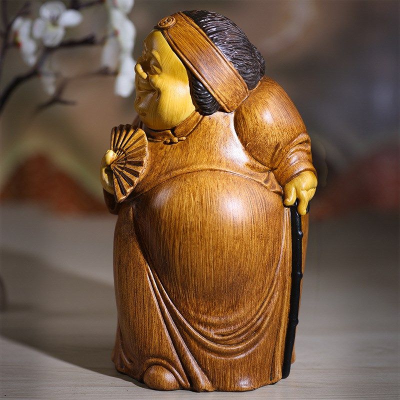 高端中式地主婆摆件客厅财神雕塑仿木雕茶几博古架装饰品桌面摆设