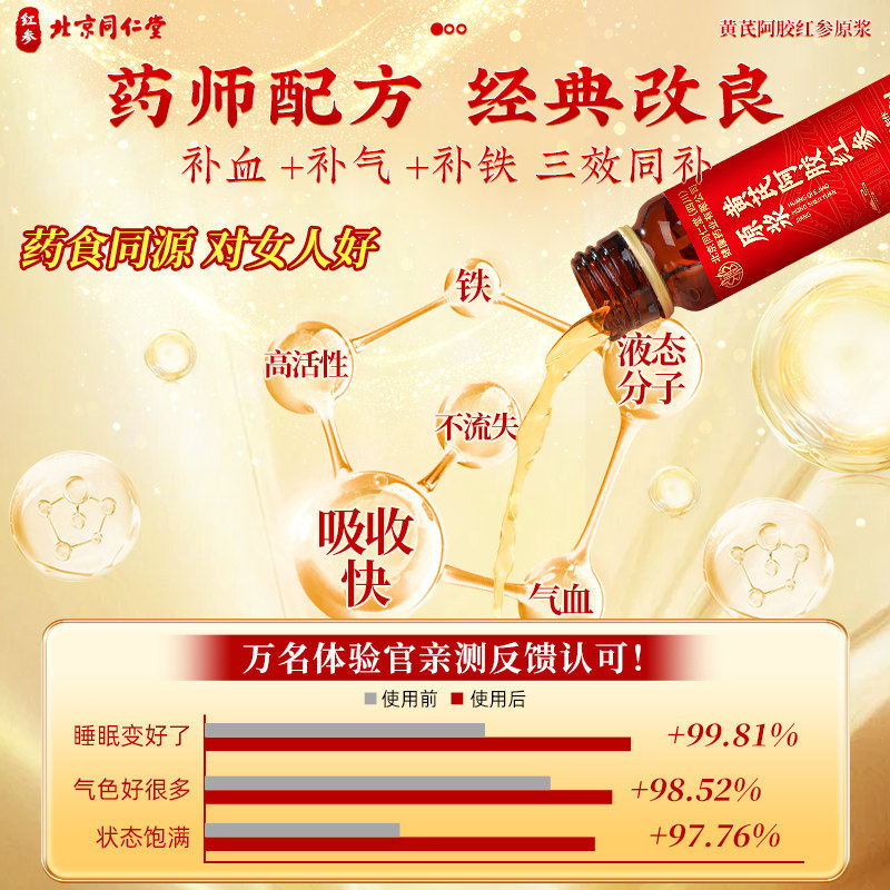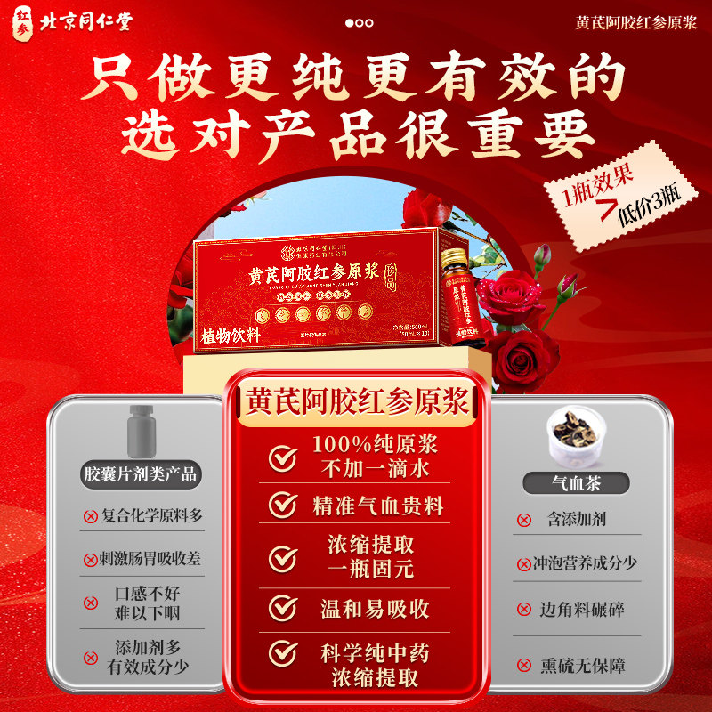 推荐理由:北京同仁堂阿胶黄芪补血口服液浆正品女生贫调理气血不足补铁气血