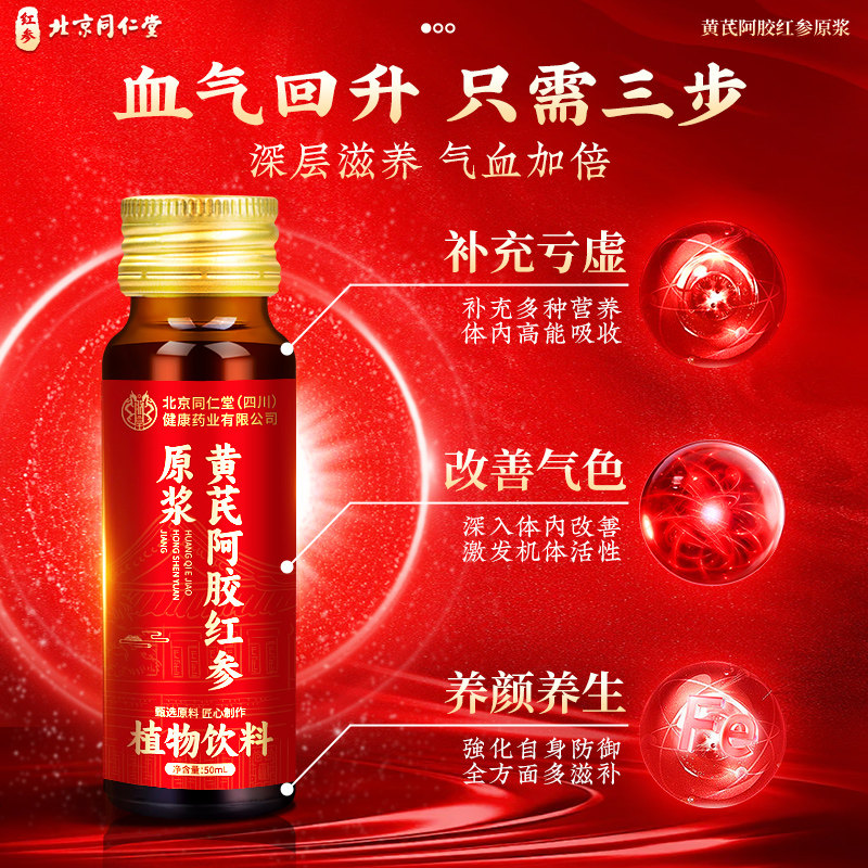北京同仁堂阿胶黄芪补血口服液浆正品女生贫调理气血不足补铁气血