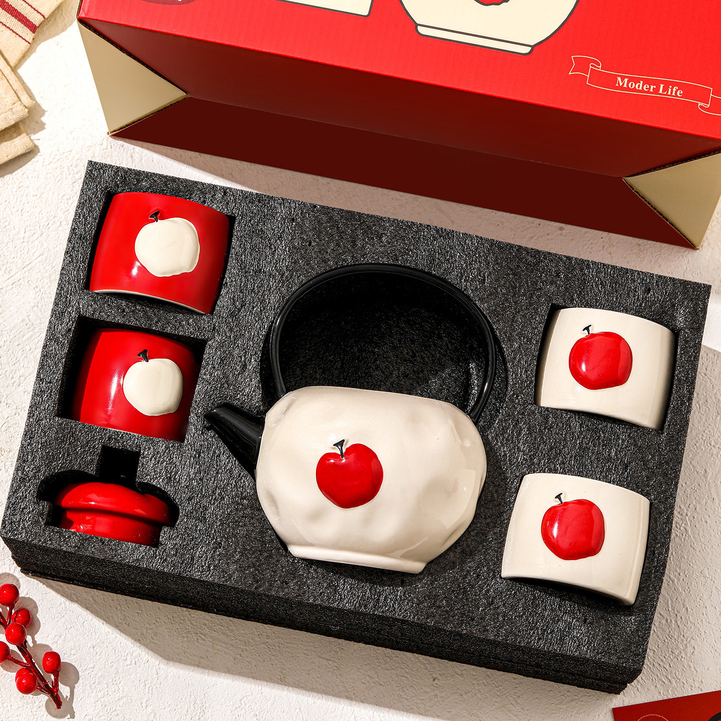 苹果陶瓷茶具水具套装家用客厅乔迁新居茶壶杯子礼盒新婚生日礼物
