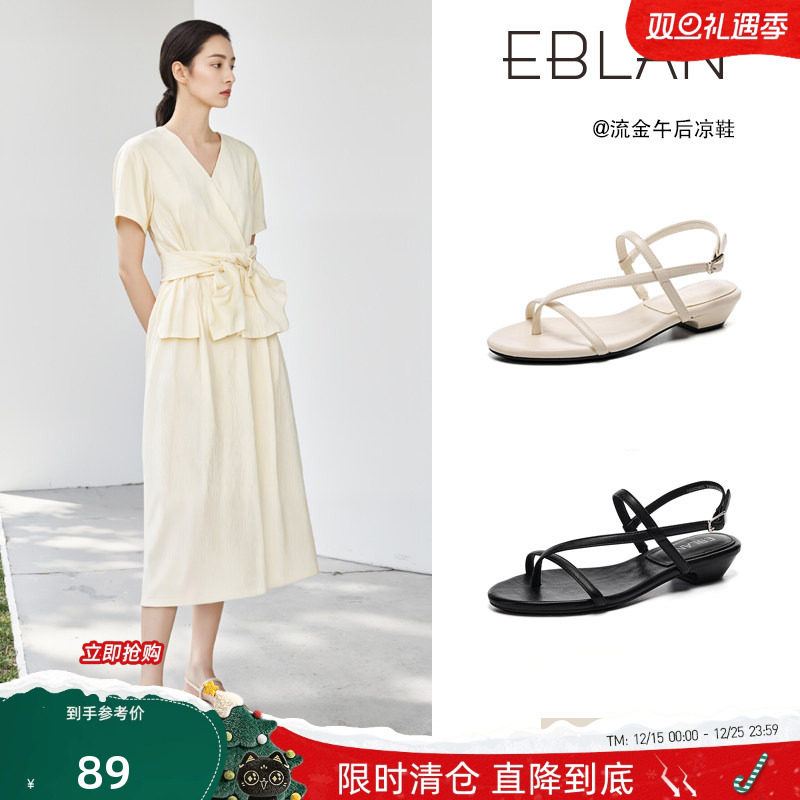 EBLAN/伊伴【89清仓福利】法式夹趾凉鞋女外穿一字粗跟罗马沙滩鞋