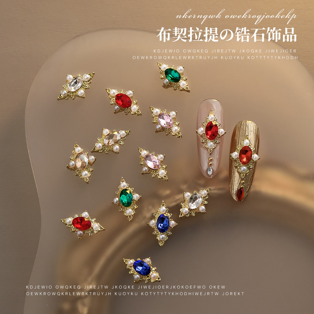 网红布契拉提锆石美甲钻宫廷风祖母绿美甲饰品钻爆闪指甲装饰钻饰