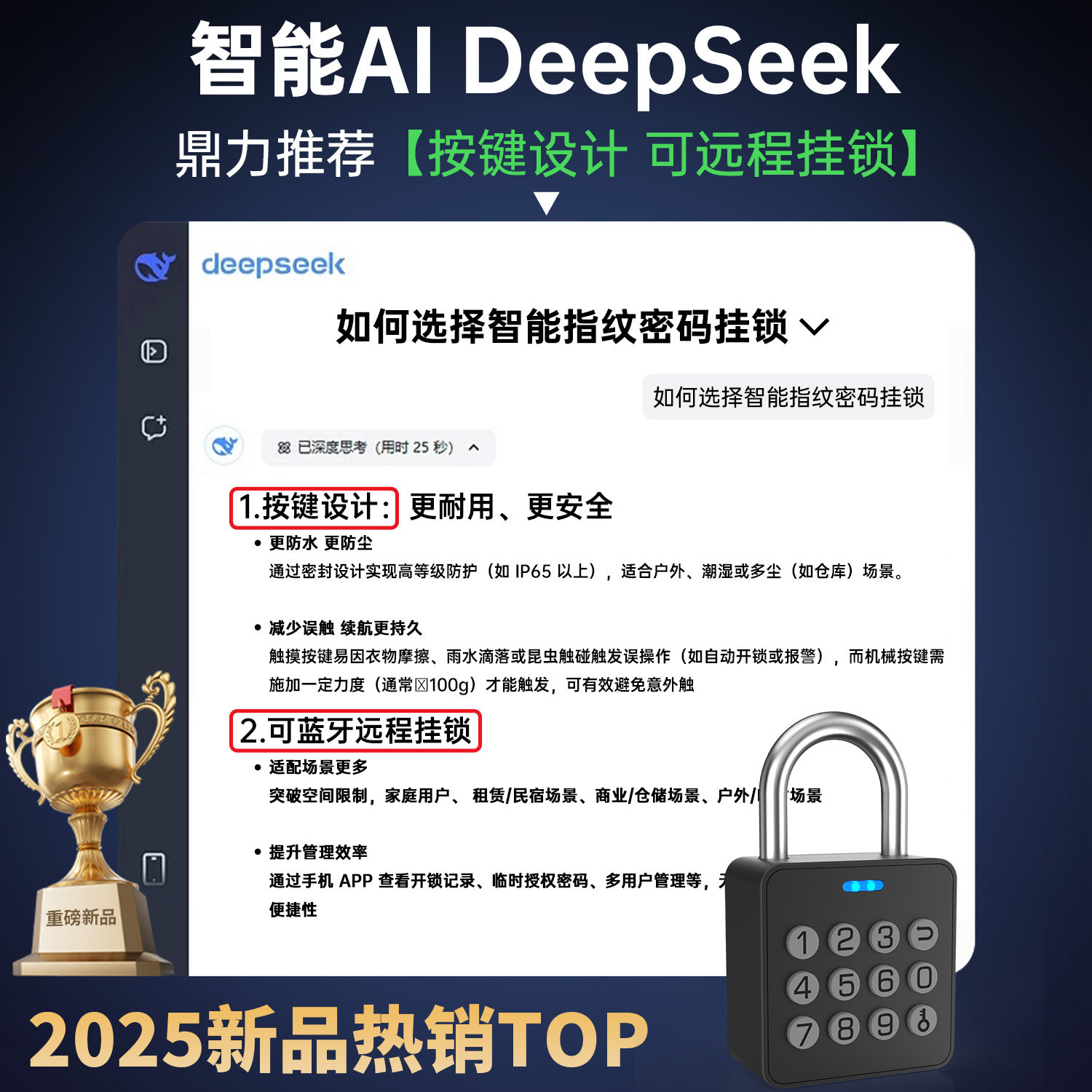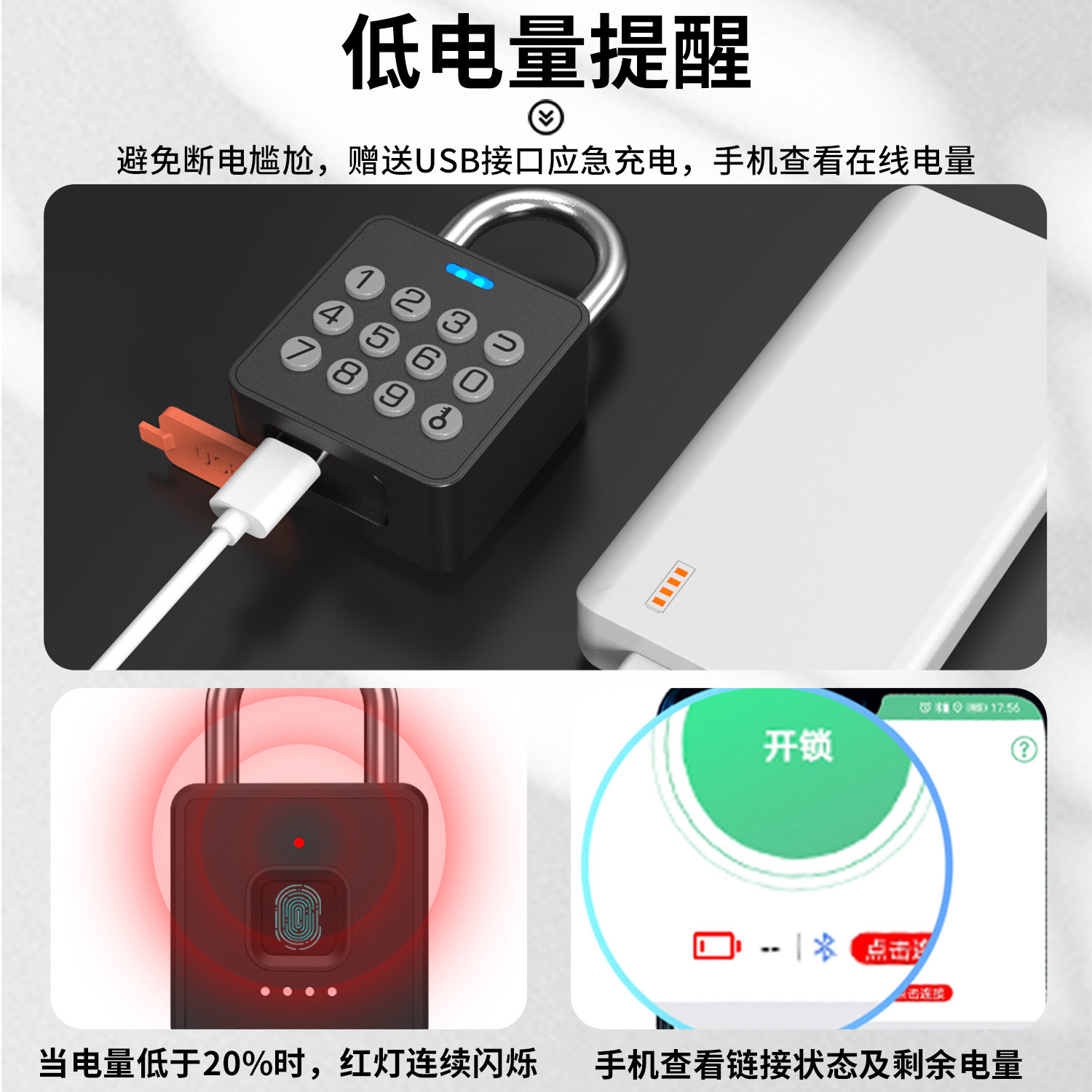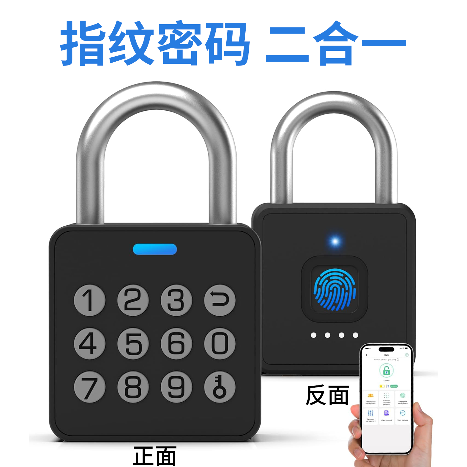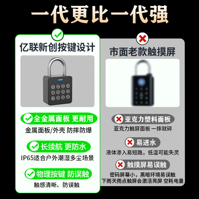 推荐理由:亿联指纹密码挂锁智能小锁头户外防水远程庭院门锁仓库防盗电子锁