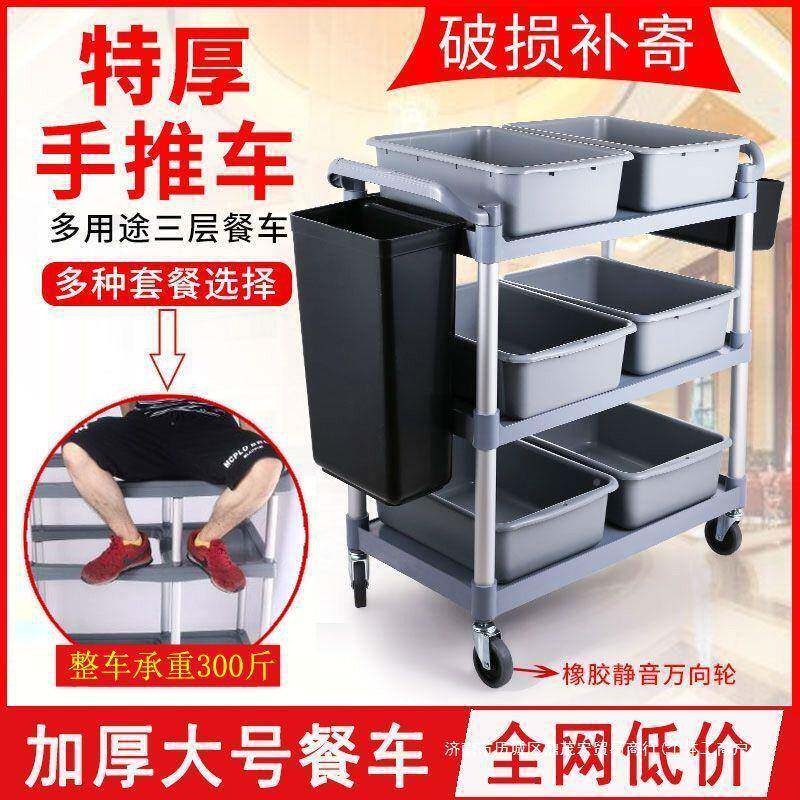 餐厅酒收店三层大号餐车多能移动加厚塑料VXV碗送餐小推车功厂直