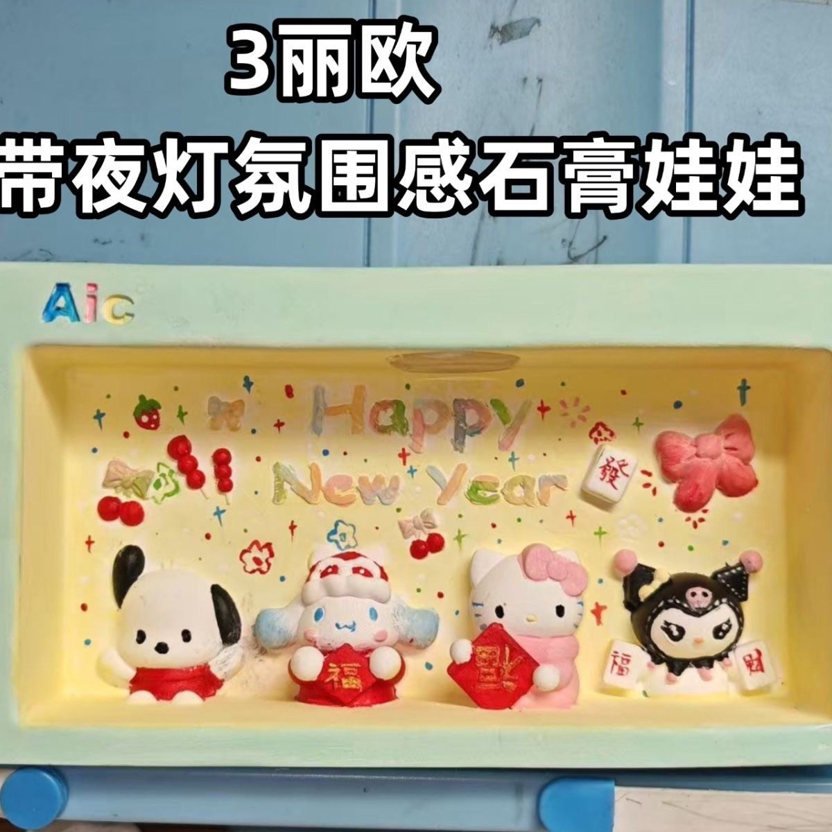 三丽欧石膏涂色手工娃娃库洛米彩绘立体小夜灯diy涂鸦摆件日礼物