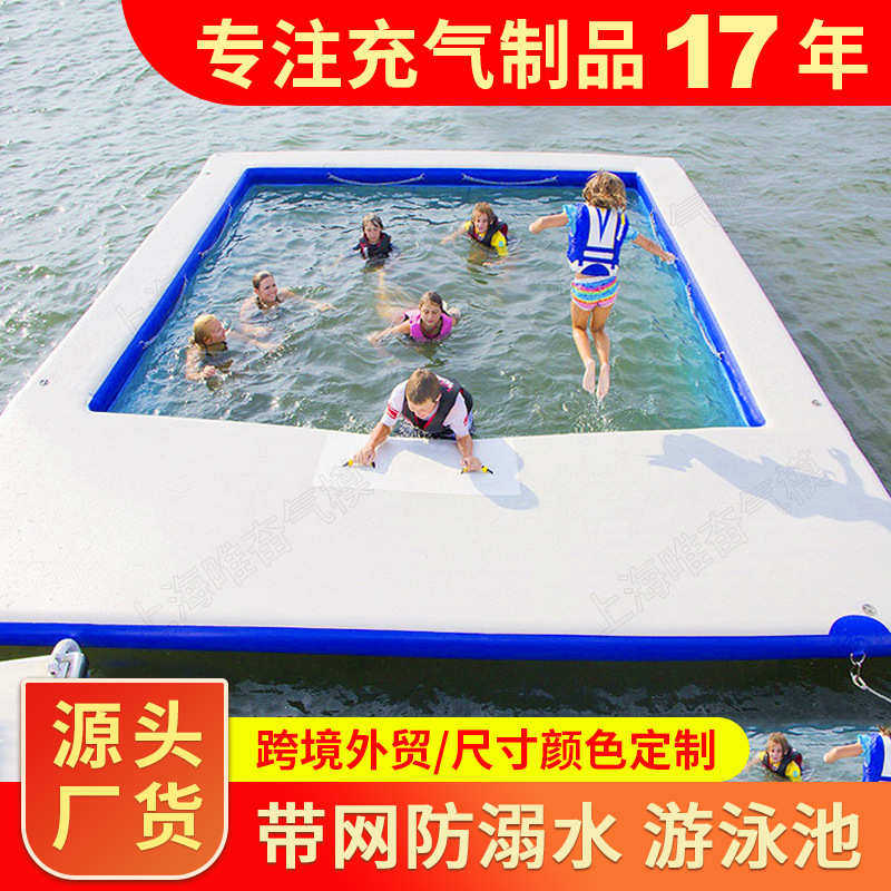 海上充气游泳池带网防溺水水上浮台漂浮戏水休息平台床浮排游艇