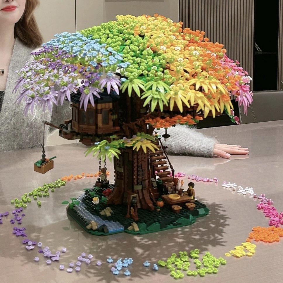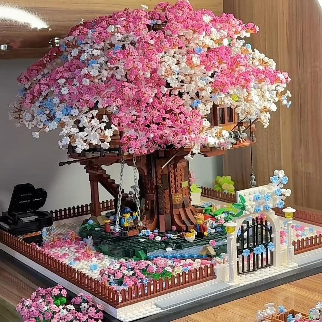 永生玫瑰花束积木盆栽樱花树屋女孩系列建筑模型拼装玩具生日礼物