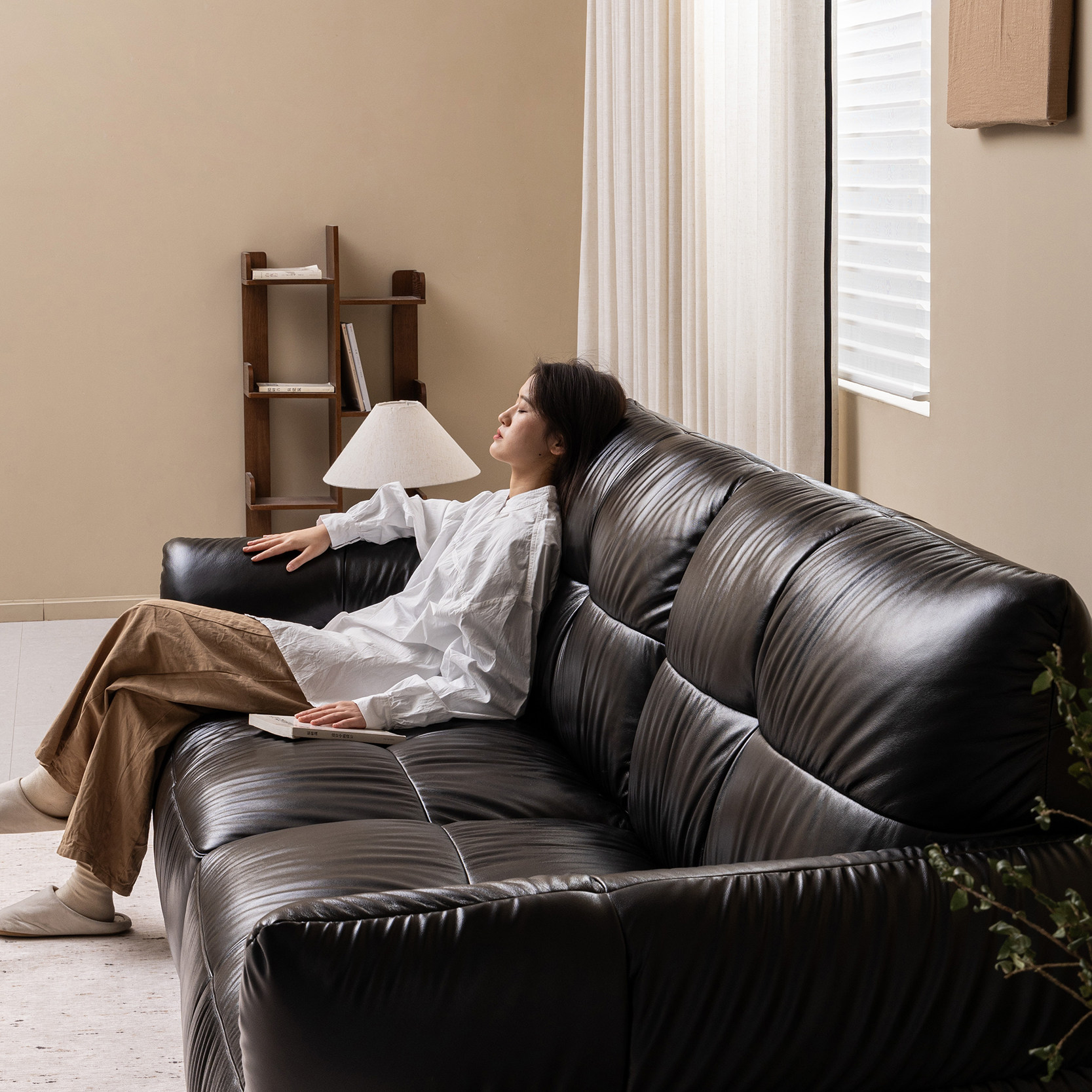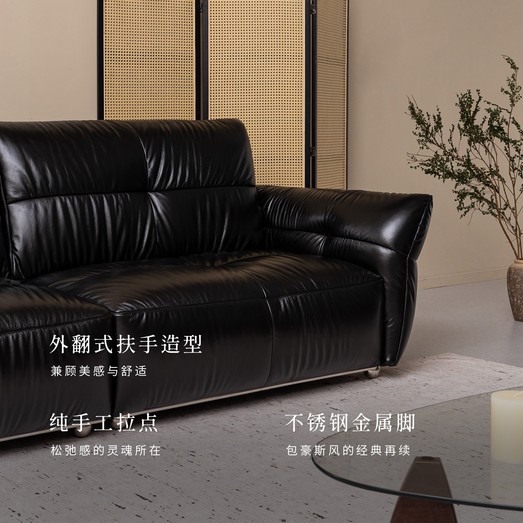 推荐理由:支吾黑珍珠皮艺真皮沙发客厅直排黑色中古风轻奢高级感2025新款