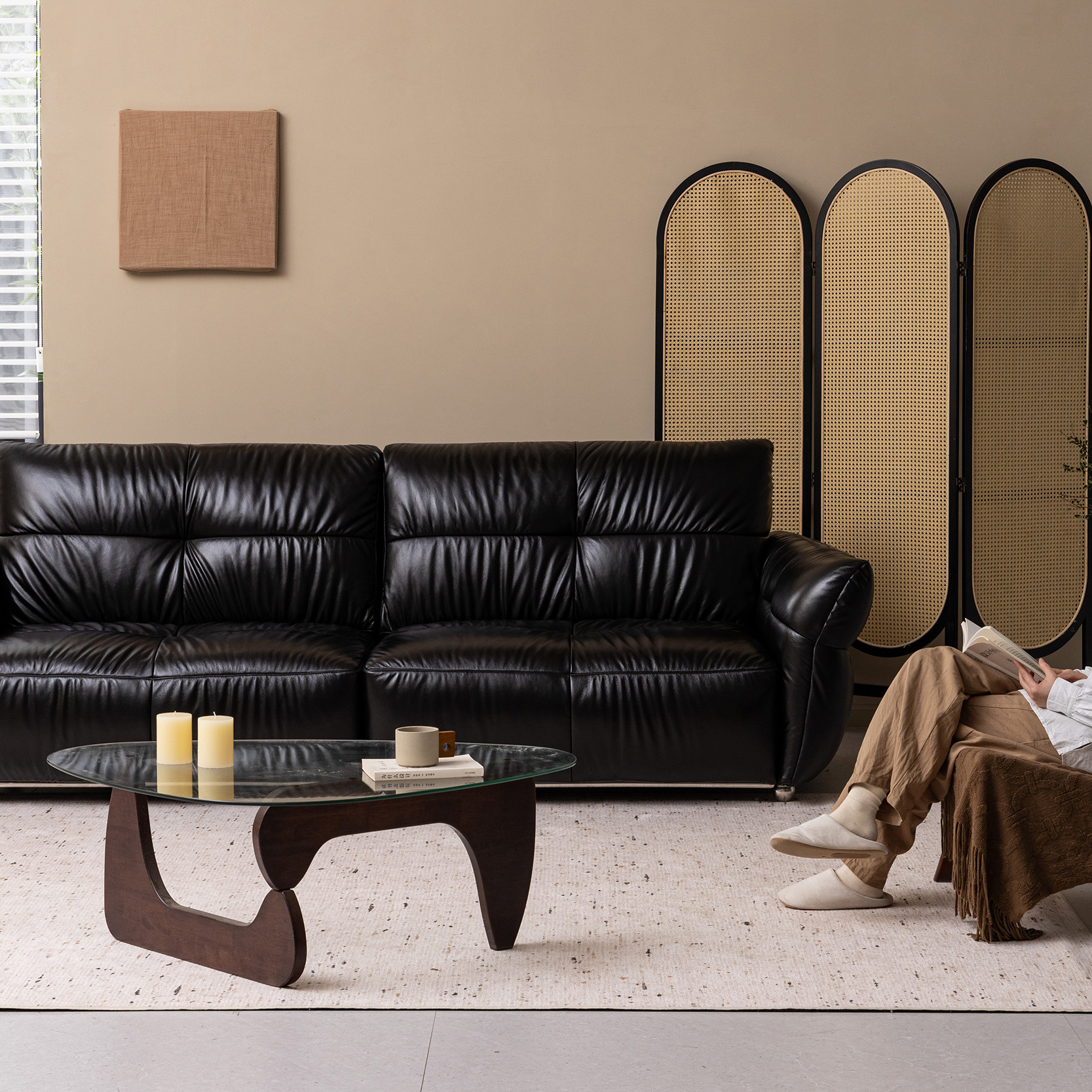 支吾黑珍珠皮艺真皮沙发客厅直排黑色中古风轻奢高级感2025新款