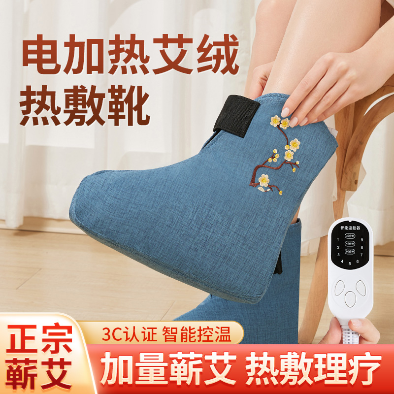 艾绒短靴电加热艾灸长筒靴护腿热敷包艾草护膝暖脚神器理疗袋助眠
