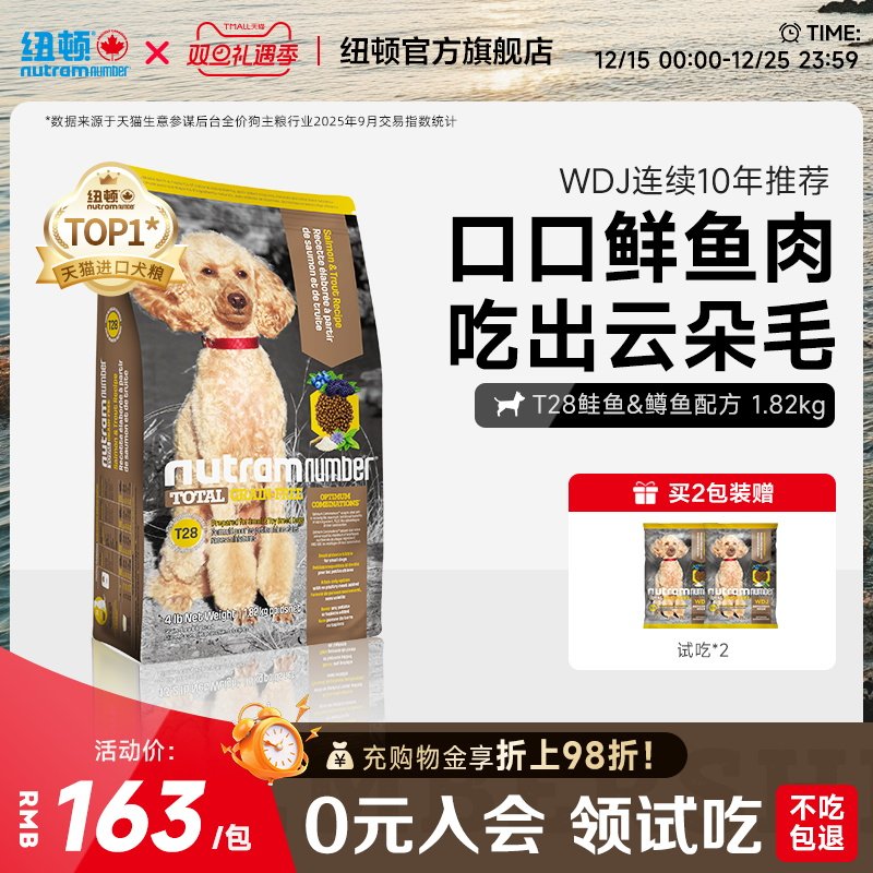 纽顿官方美国进口t28中小幼型犬泰迪鱼肉味无谷通用狗粮1.82kg