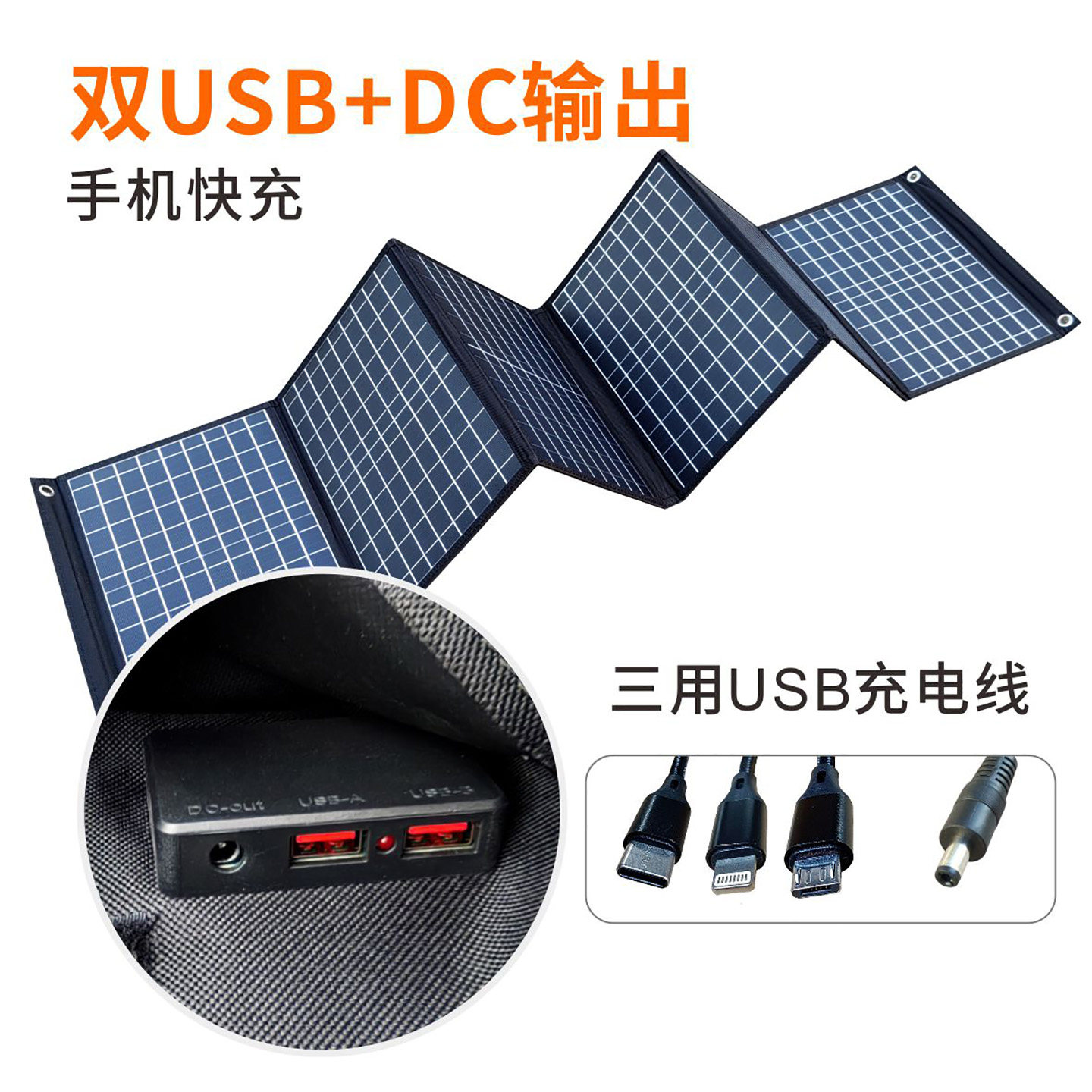 太阳能充电板折叠便携手机快充USB小功率移动电板源充发电光伏板