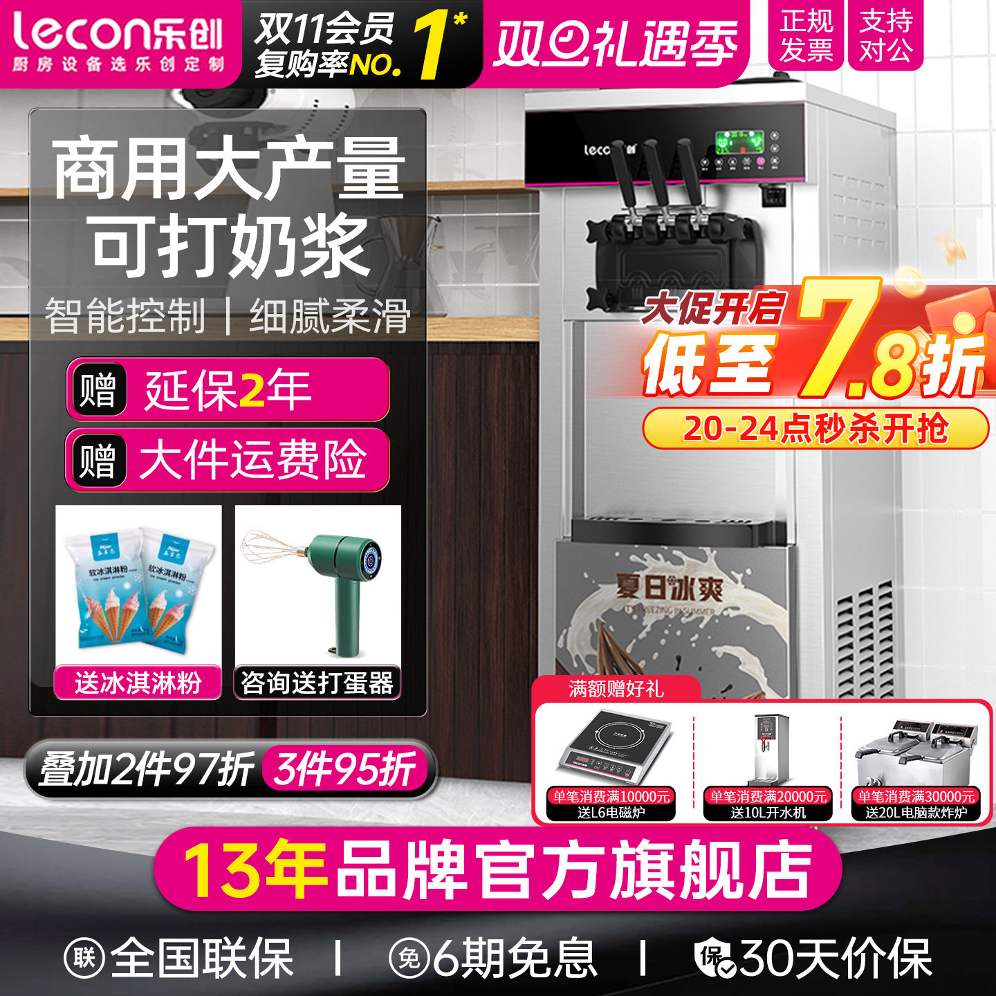 lecon/乐创 商用冰淇淋机立式雪糕机 小型全自动奶浆甜筒冰激凌机