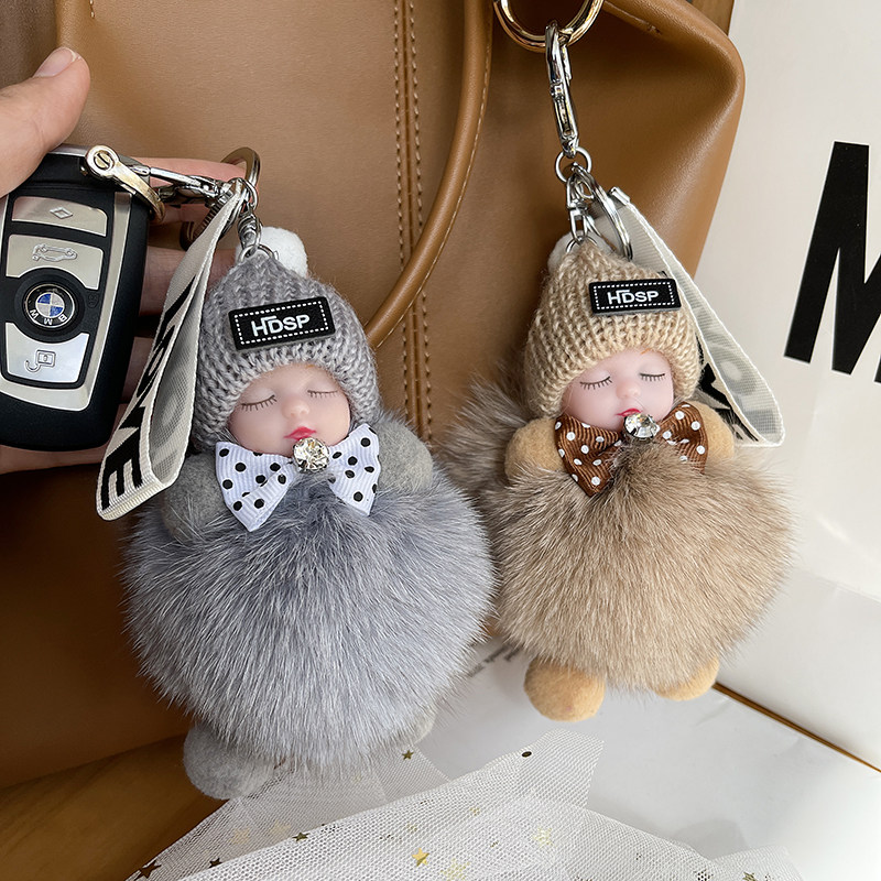 狐狸毛睡眠娃娃毛绒玩具手机挂饰挂绳玩偶公仔包包挂件汽车钥匙扣