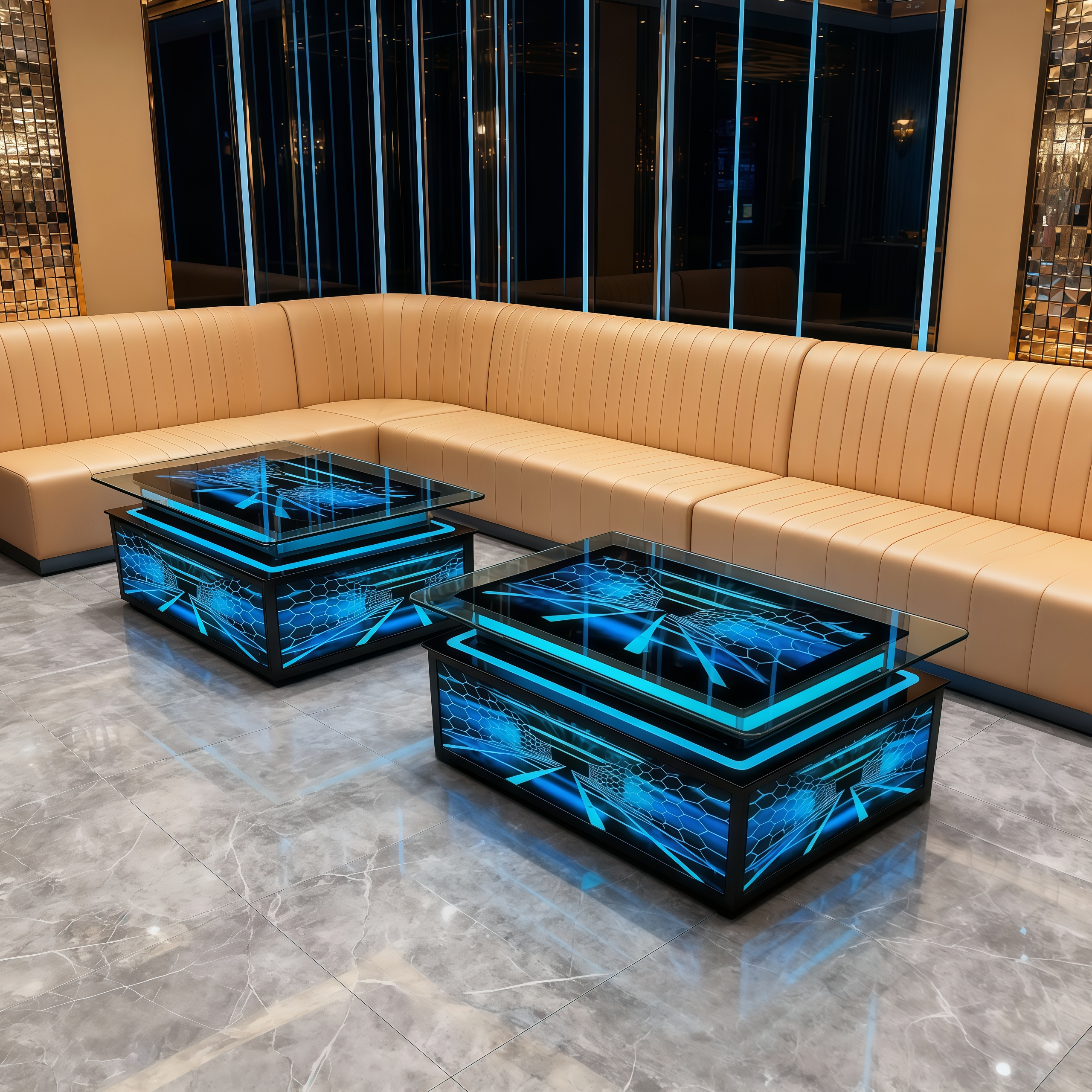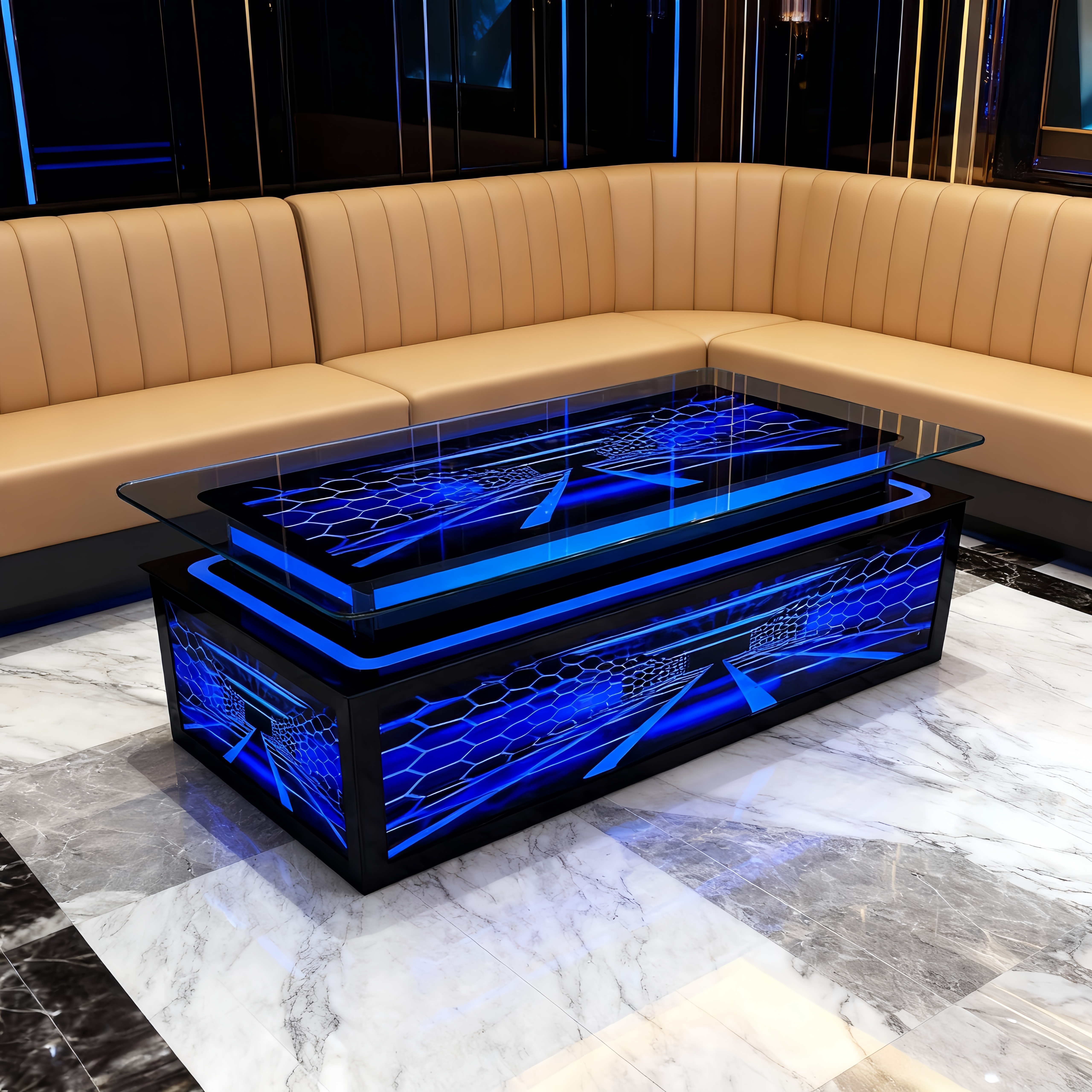 推荐理由:新款ktv茶几发光双层专用钢化玻璃七彩桌子酒吧不锈钢茶台大理石
