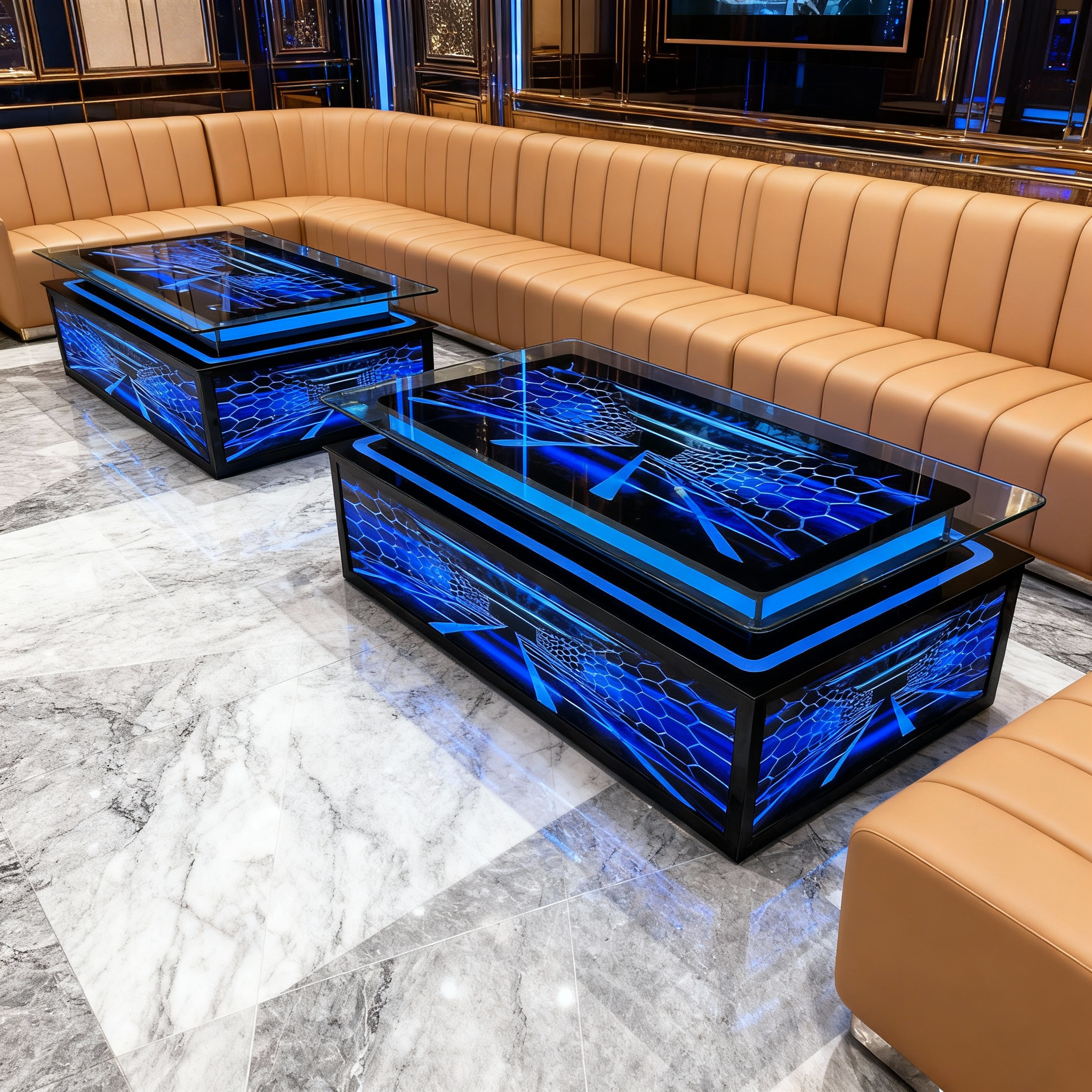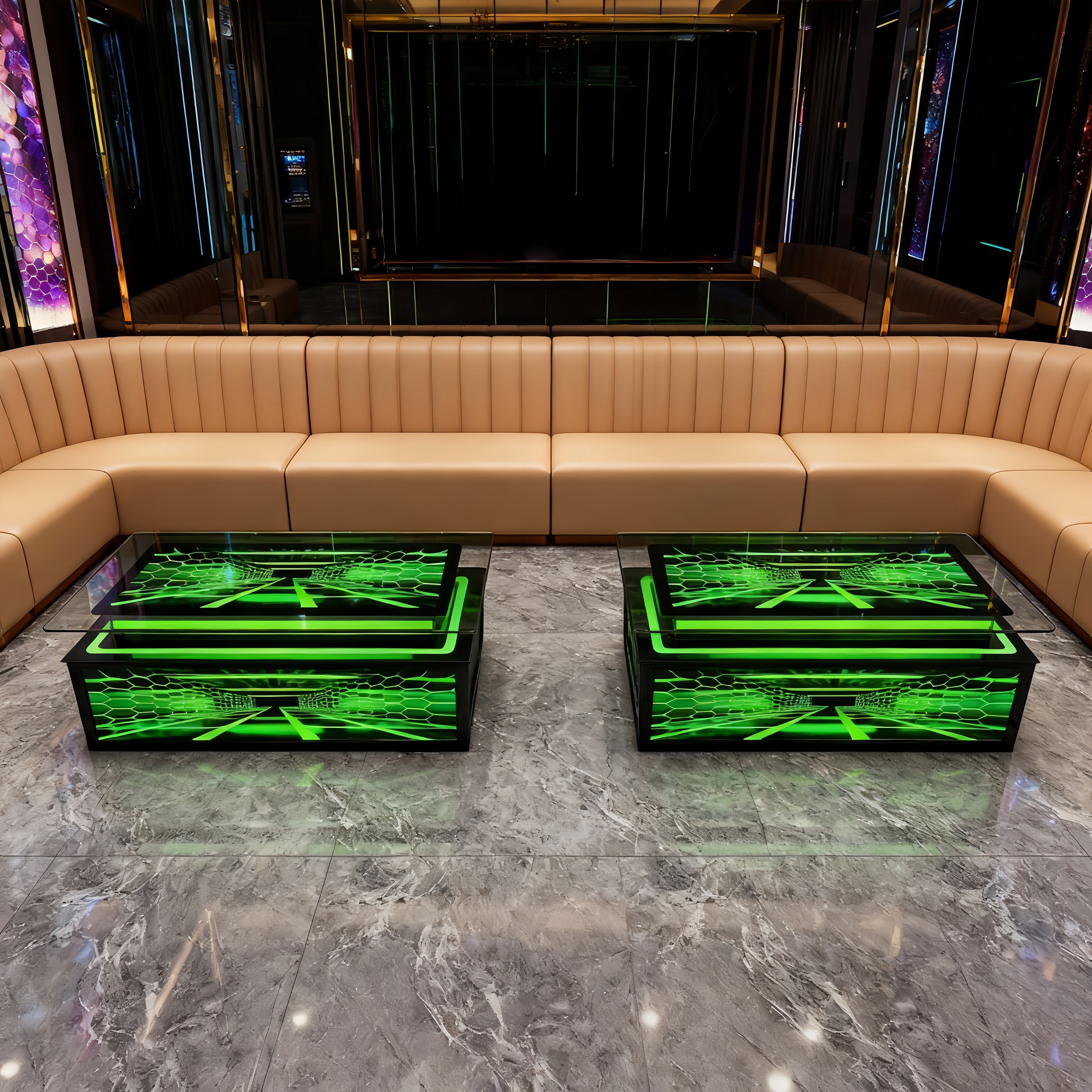 新款ktv茶几发光双层专用钢化玻璃七彩桌子酒吧不锈钢茶台大理石