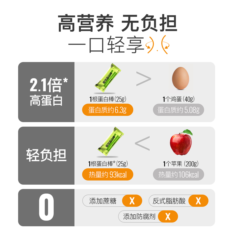 抗饿解馋蛋白棒,高钙松脆不粘牙,高膳食纤维,不额外添加白砂糖,实力高蛋白,轻松满足人体所需,甜品级蛋白棒,每口都是脆脆惊喜。到手价:73.2元/6盒