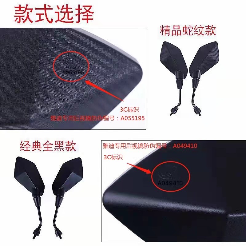 推荐理由:雅迪电动车原装正品原厂反光镜/后视镜/倒车镜镜面带有雅迪字包邮