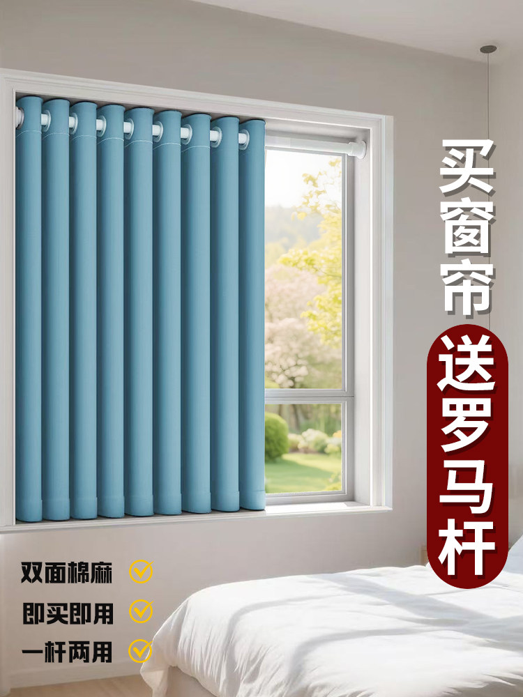 免打孔遮光窗帘简易安装送杆一整套2025新款遮阳防晒卧室隔断飘窗