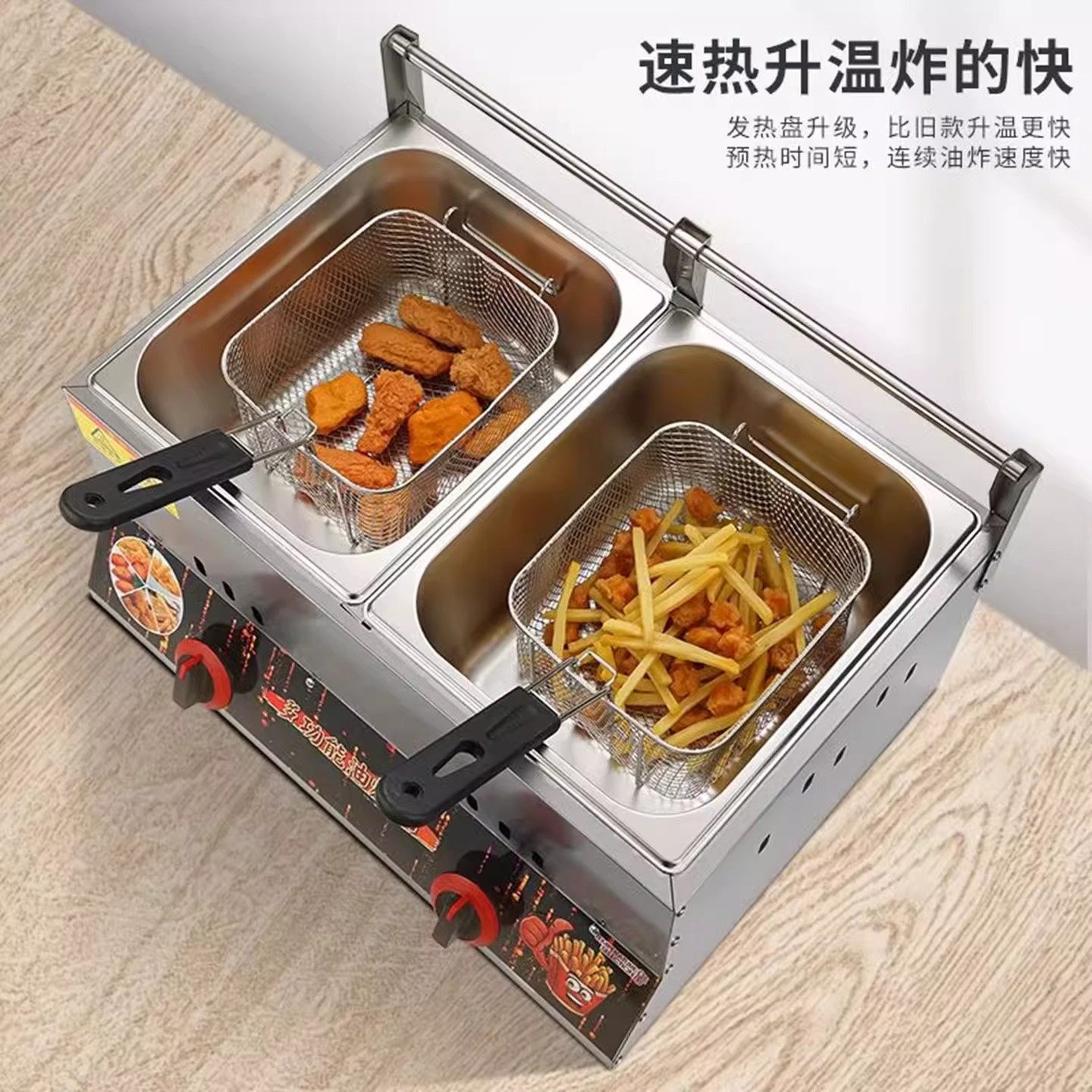 燃气油炸锅油炸机商用煤气油炸机器液化气厨房油炸炉新款摆摊双缸