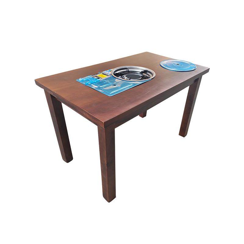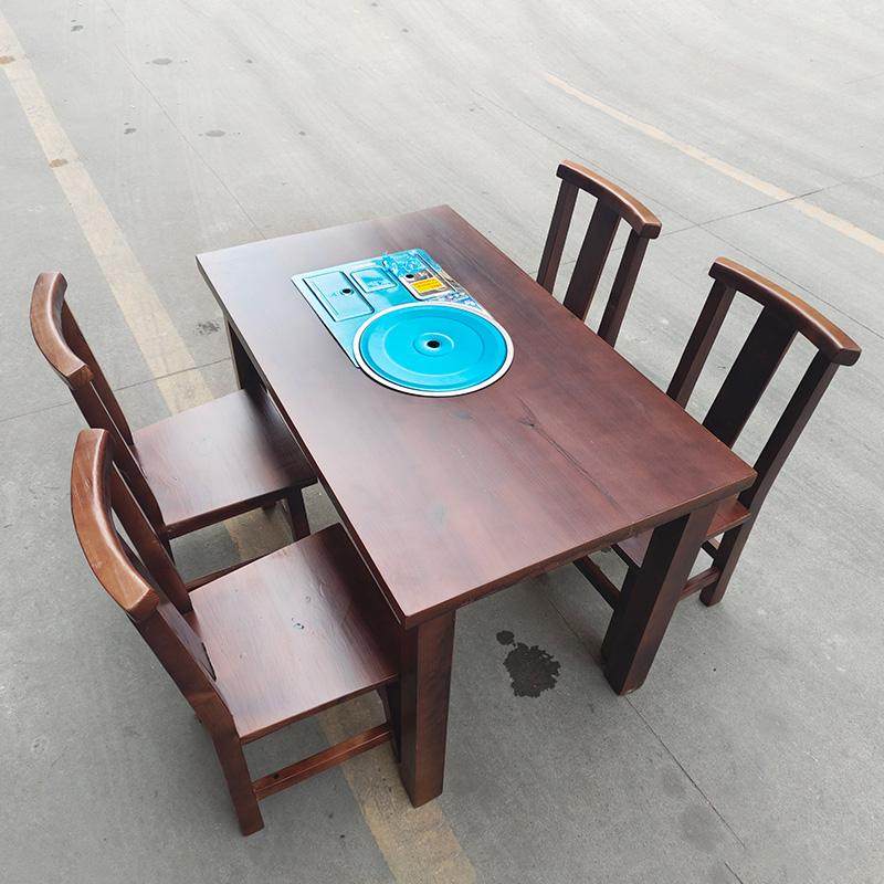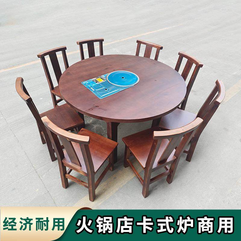 火锅店圆桌嵌入式卡式炉饭店火锅桌商用烧烤店复古农家乐加厚桌子