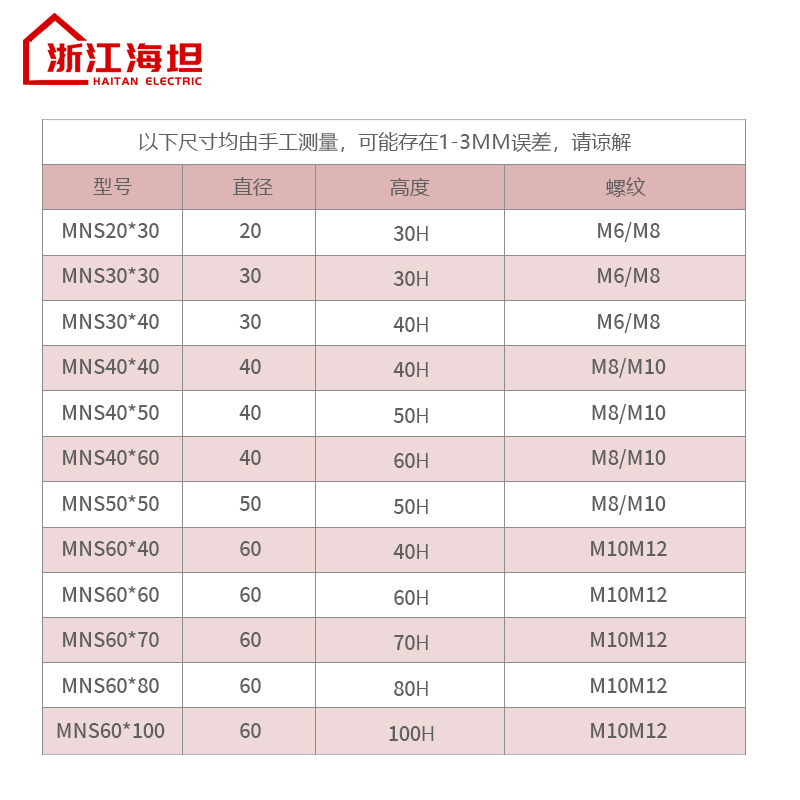 推荐理由:海坦MNS绝缘子 低压30 40 50 60 80 M6 M8铁芯胶木 DMC材质高强度